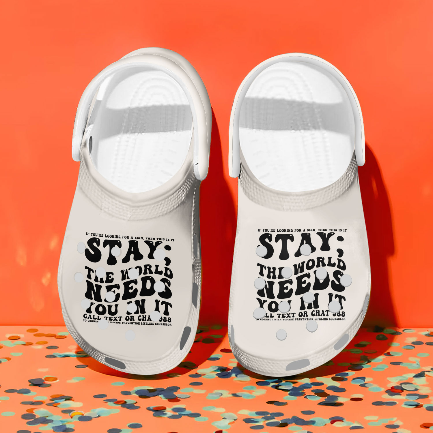 3d Printed Stay The World Needs You In It Clogs For Kids & Adults