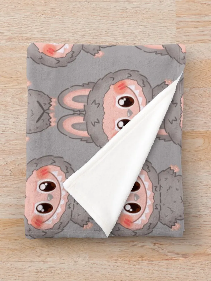 Adorable Grey Labubu Doll Pattern All Over Printed Fleece Blanket, Unique Gift For Labubu Fans