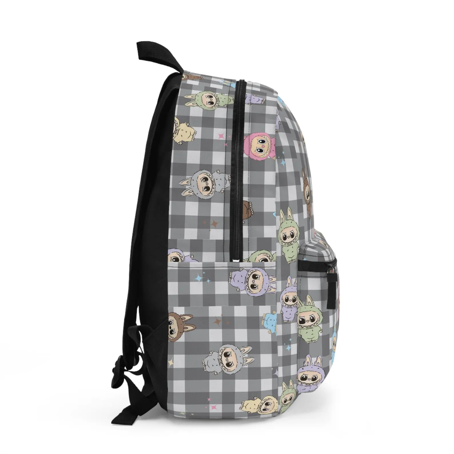 Custom Name Happy Labubu Dolls & Sweets Cartoon Grey Backpack