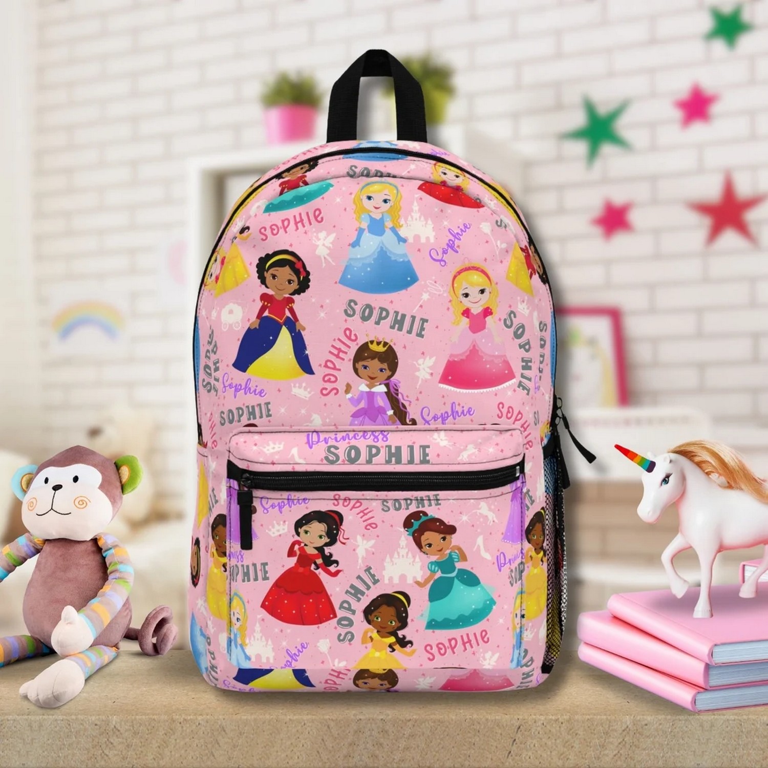 Custom Name Princess Sticker Pink Backpack