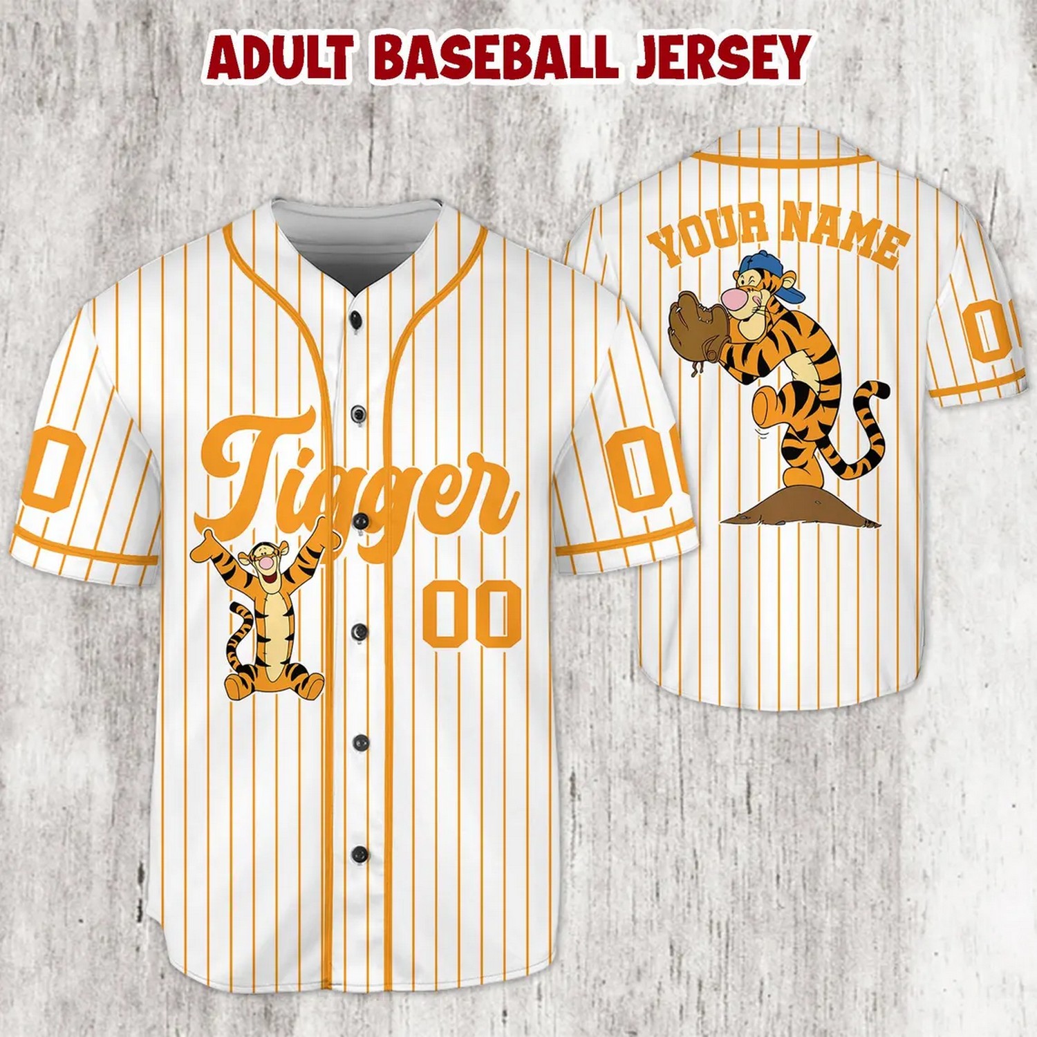 Custom Name And Number Disney Winnie The Pooh Piglet Cute Striped Line Baseball Jersey