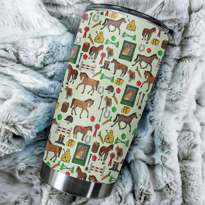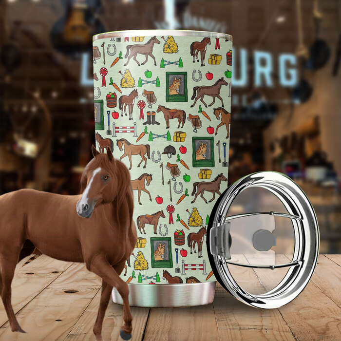 Beautiful Horeses Pattern 20oz Green Stainless Steel Tumbler