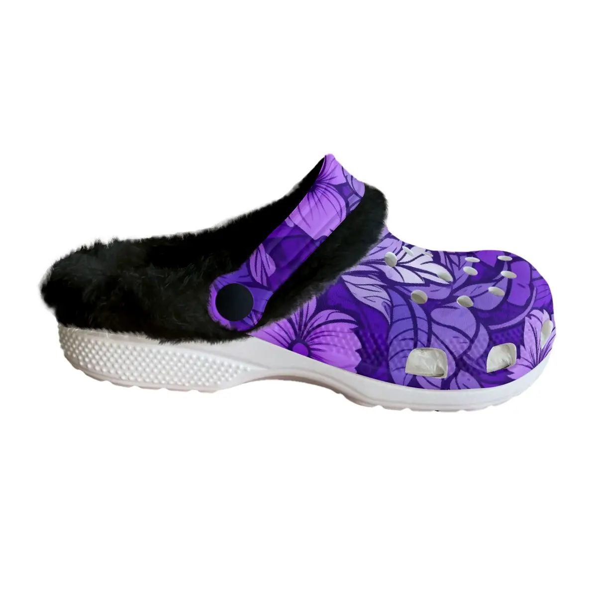 Beautiful Violet Polygon Style Fleece Clogs Ideal Gift For Women