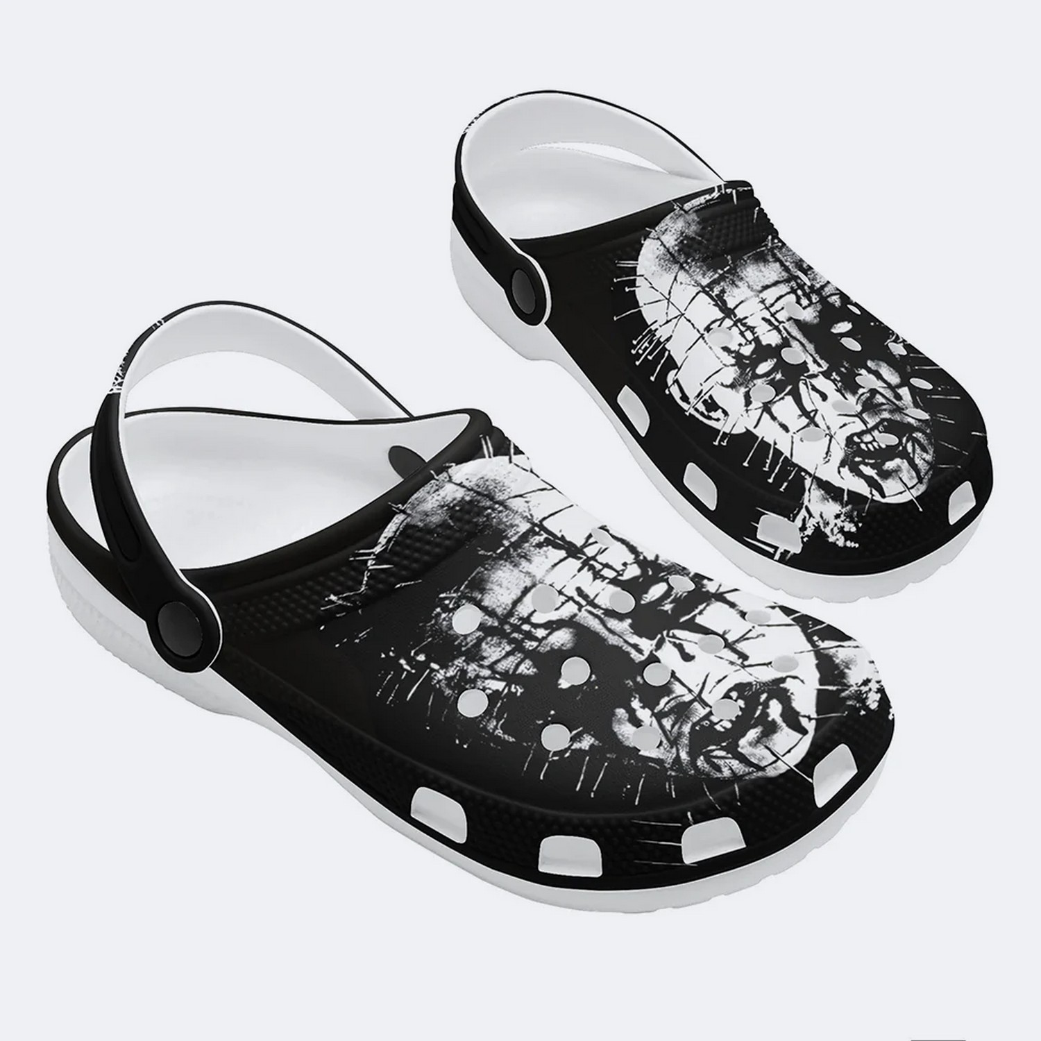Size ChartLet’s upgrade your outfit and become stylish in every step with our stunning Black Metal Pinhead Horror Halloween Black Clogs For Kids & Adults in the trendy collection of Horror Movie Characters Clogs.