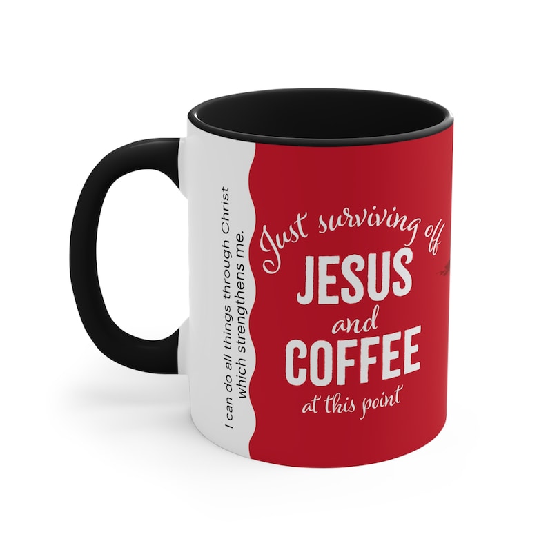 Christian Mug, Gift for Christian, Jesus and Coffee Mug, Accent Coffee Mug, 11oz, Gift for her, Gift for him, Gift for friend