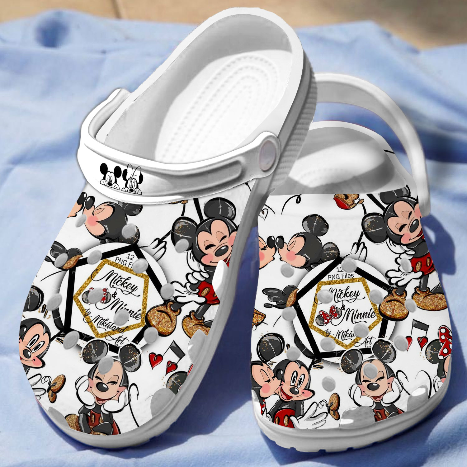 Classic Lovely Mickey And Minnie Mouse White Cartoon Clogs For Kids And Adults