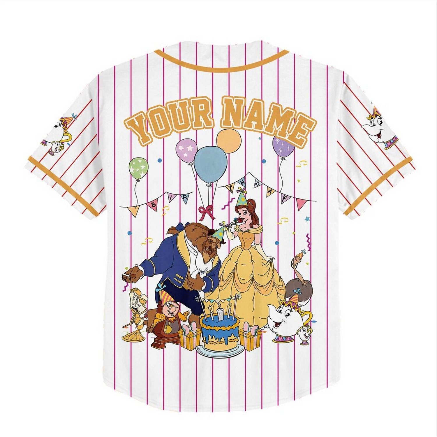 Custom Name And Number Disney Beauty And The Beast Birthday Party Baseball Jersey