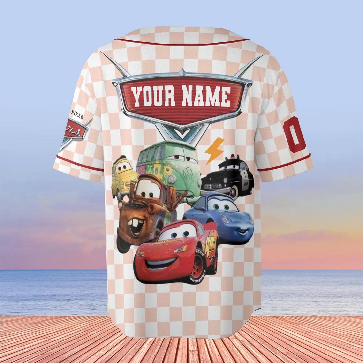 Custom Name And Number Disney Cars Pixar Checkered Baseball Jersey