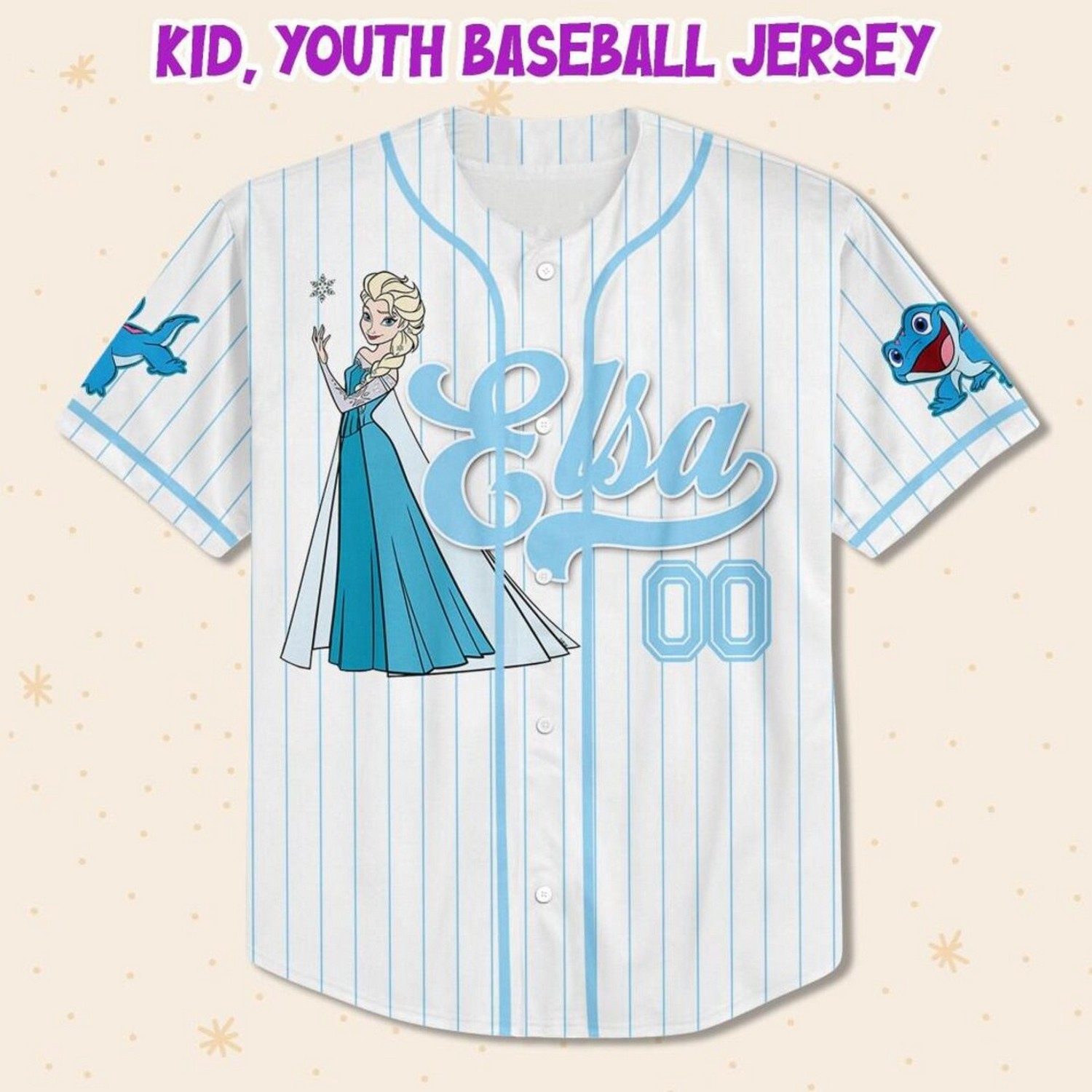 Custom Name And Number Disney Frozen Princess Elsa And Fire Frog Striped White Baseball Jersey