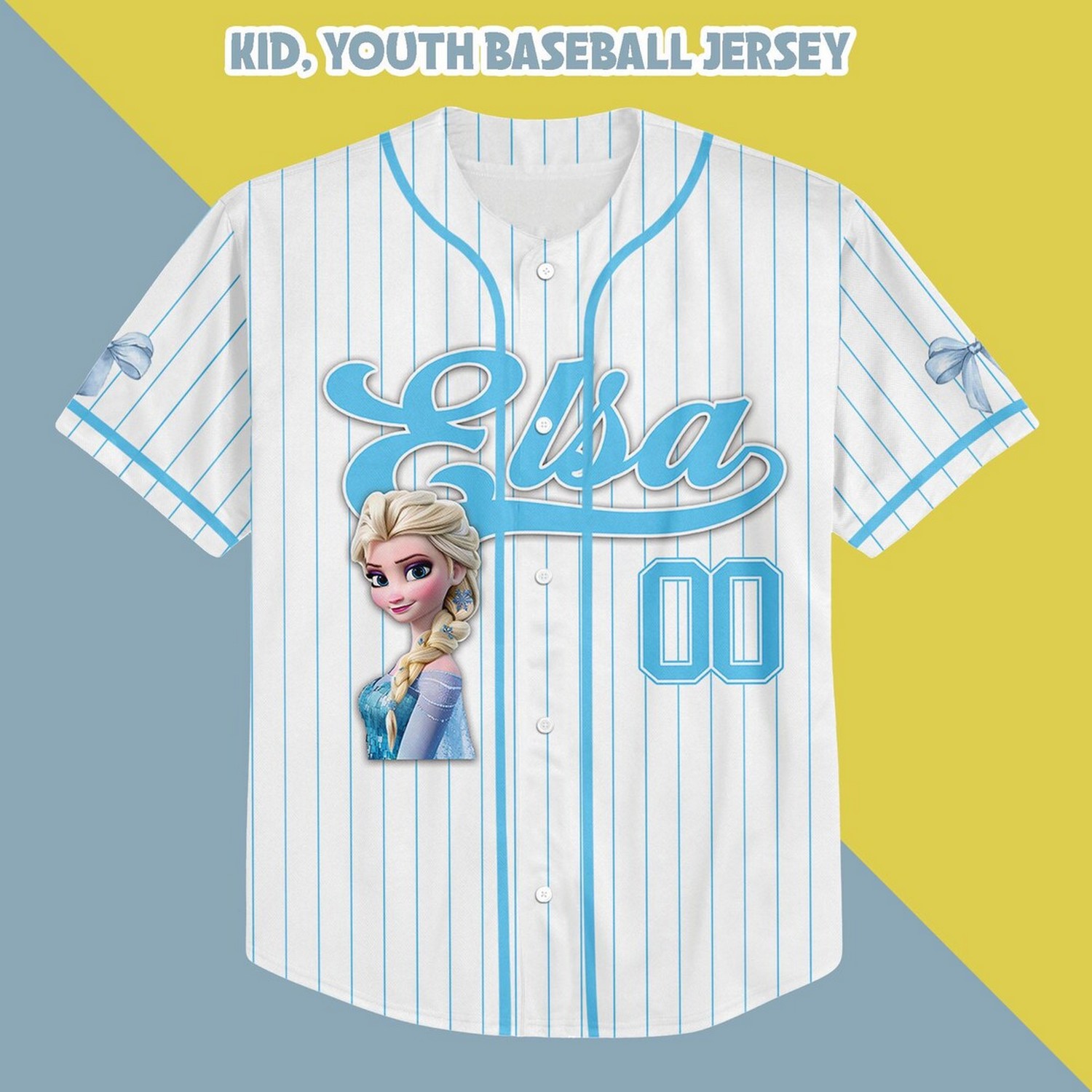 Custom Name And Number Disney Frozen Princess Elsa Striped White Baseball Jersey