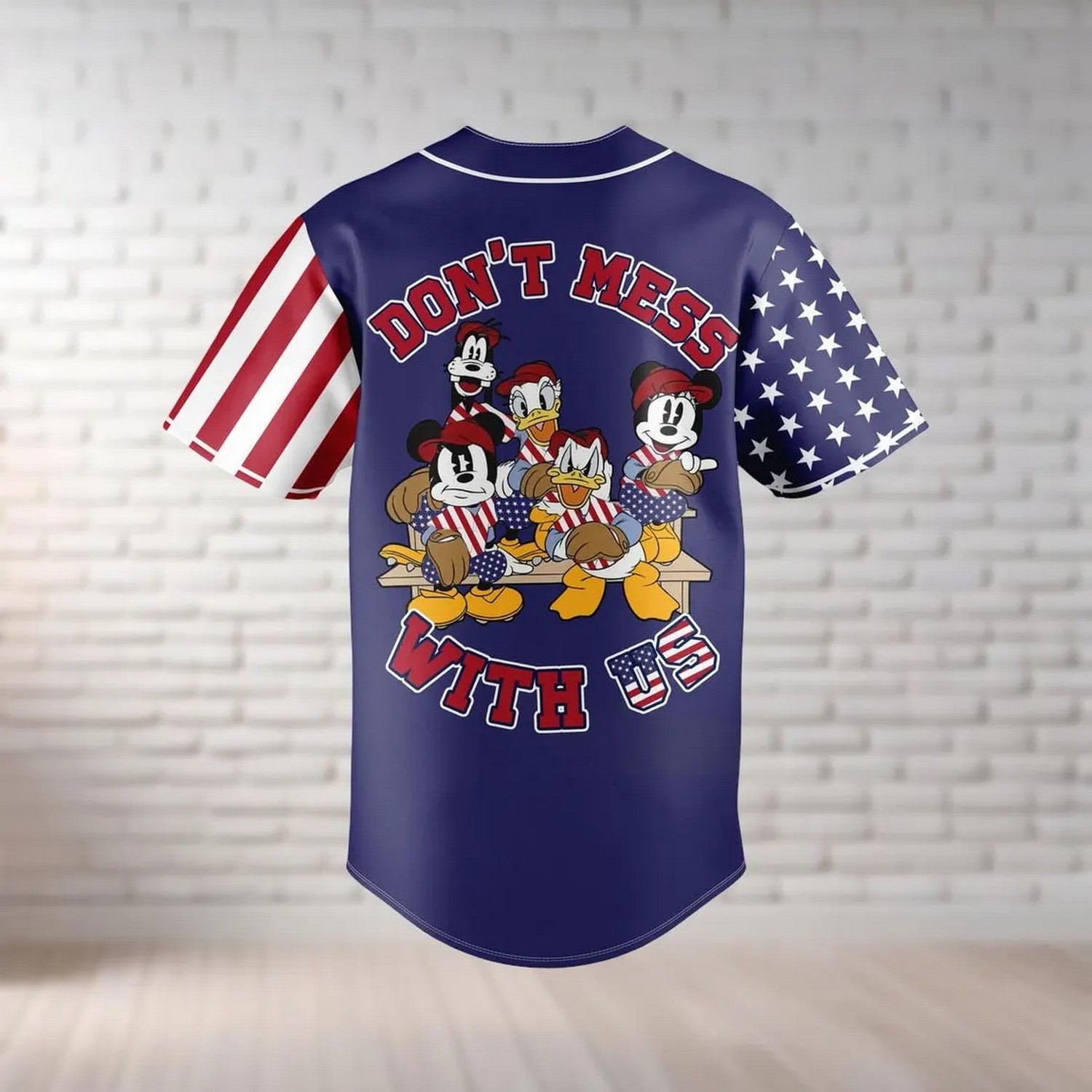 Custom Name And Number Disney Goofy 4th Of July Dark Blue Baseball Jersey