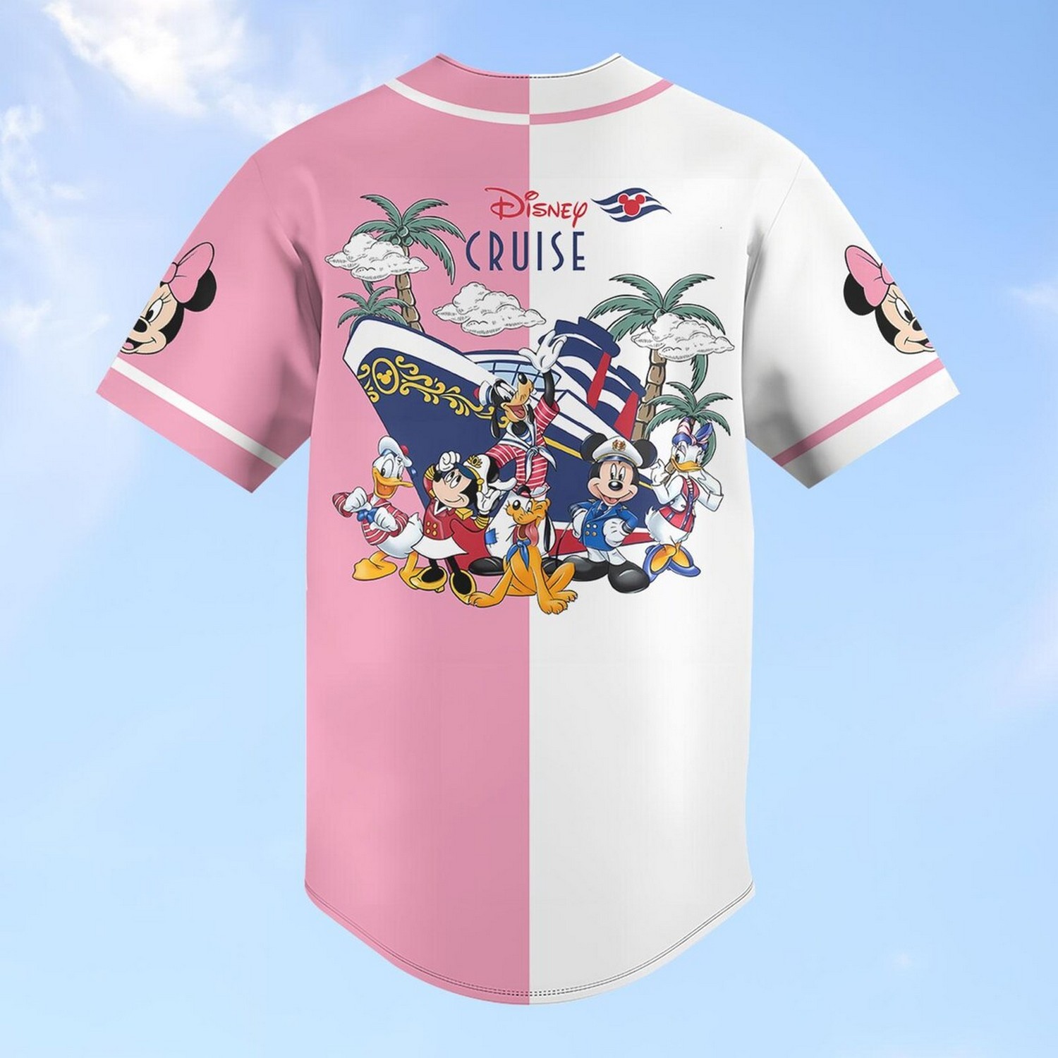 Custom Name And Number Disney Minne Mouse Cruise Pink White Baseball Jersey