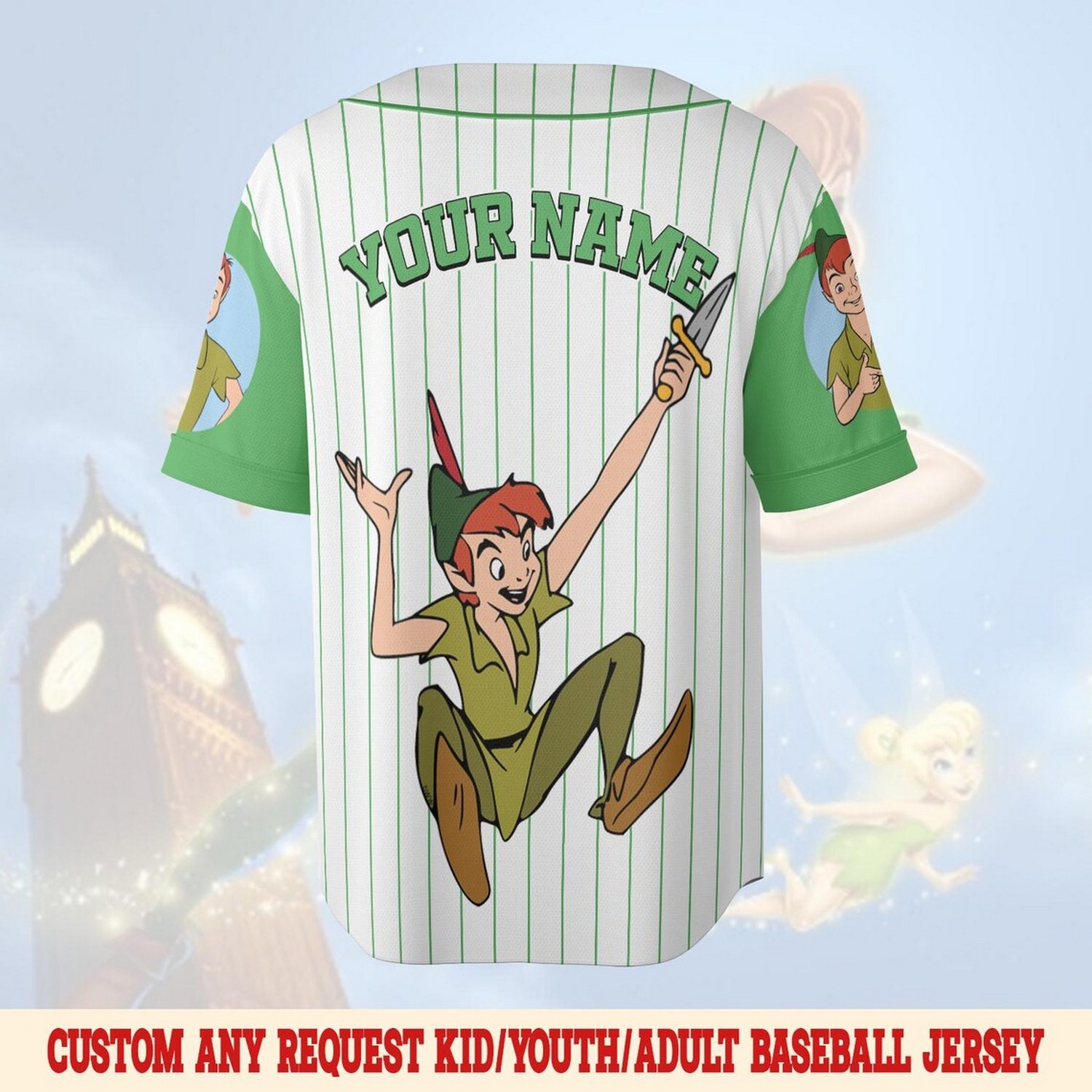 Custom Name And Number Disney Peter Pan Striped Green White Baseball Jersey