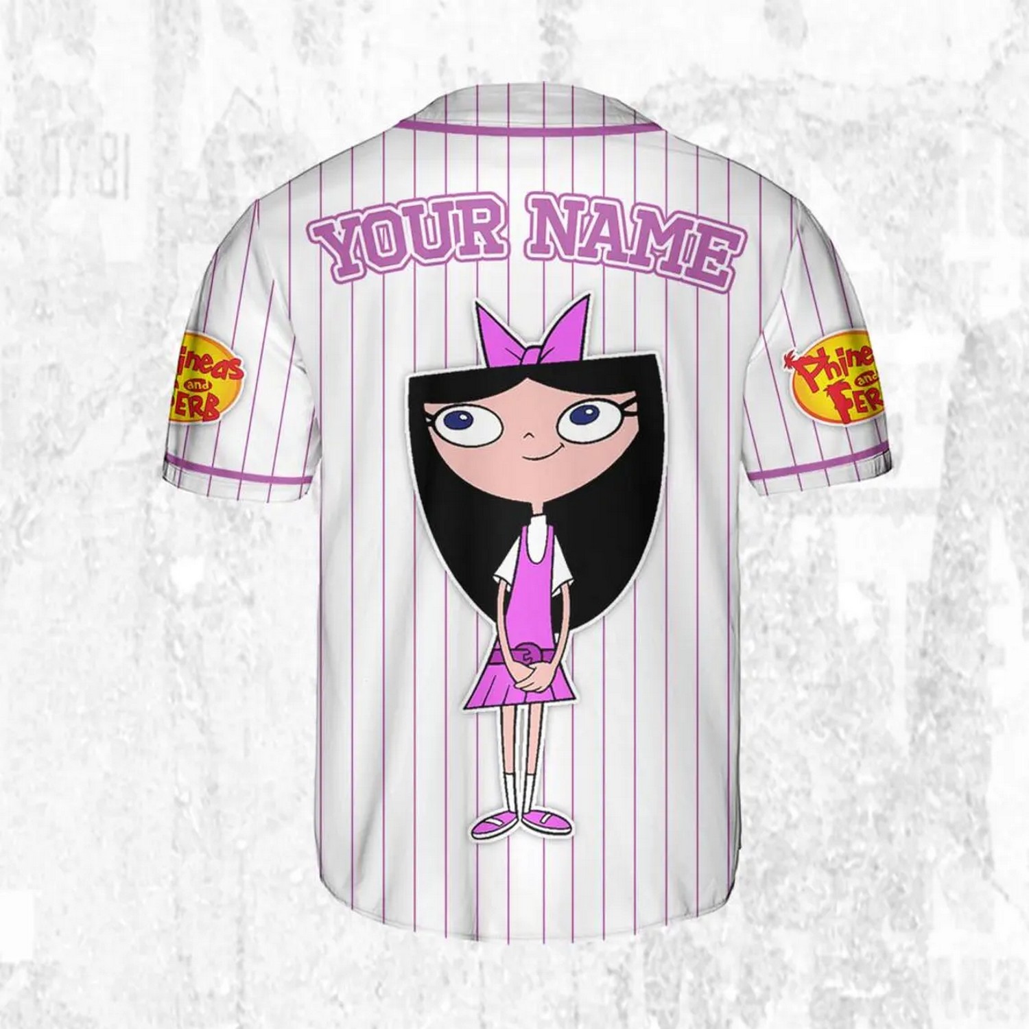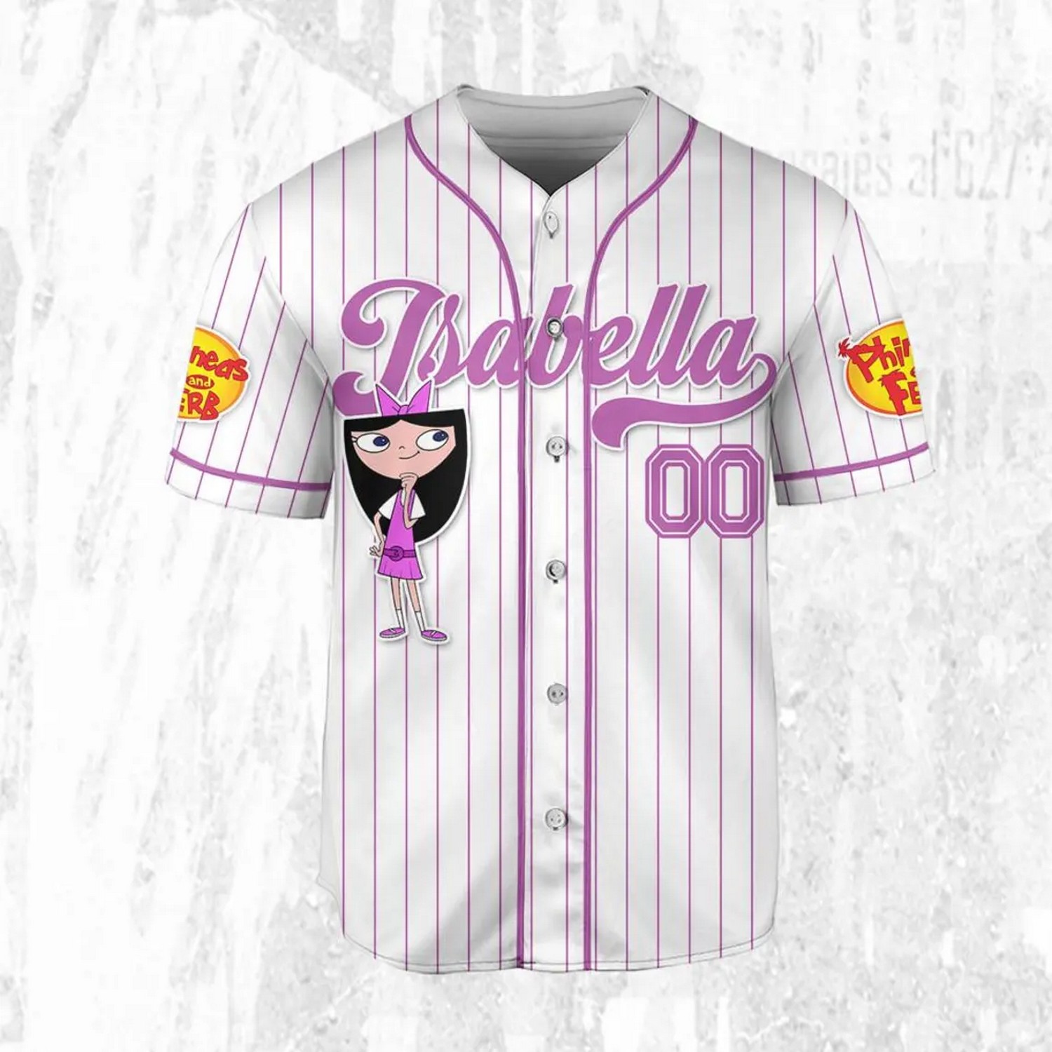 Custom Name And Number Disney Phineas And Ferb Isabella Striped White Baseball Jersey