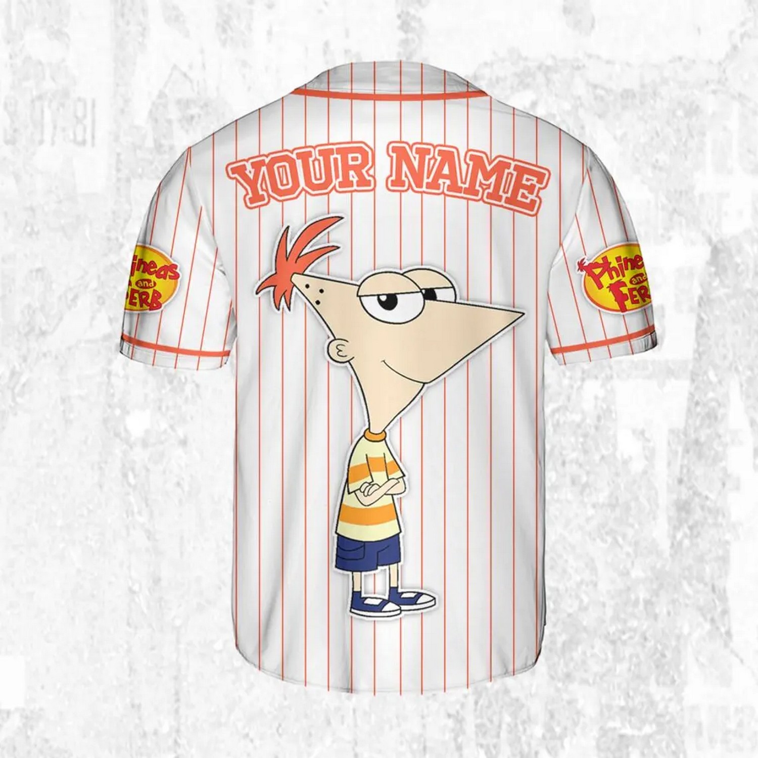 Custom Name And Number Disney Phineas And Ferb Phineas Striped White Baseball Jersey