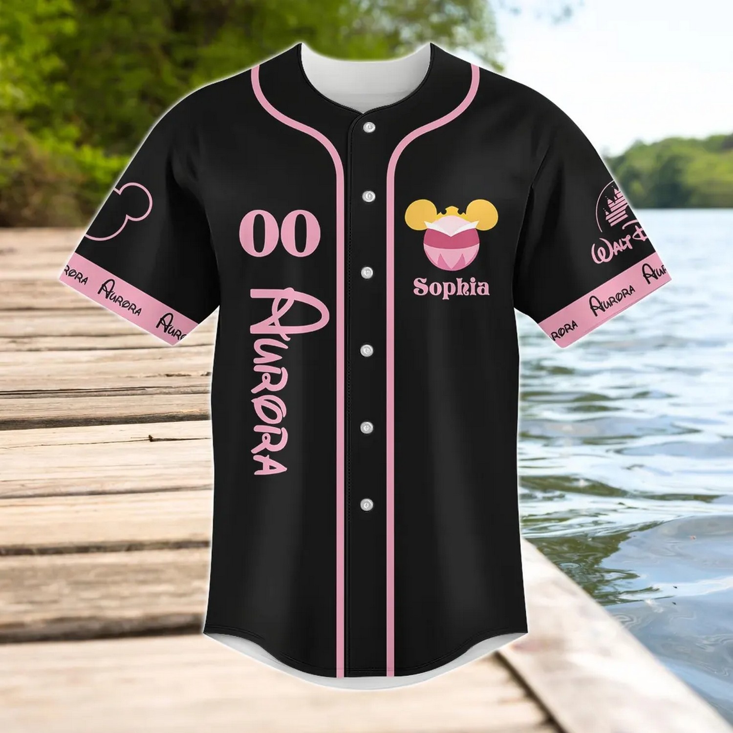 Custom Name And Number Disney Princess Aurora Sleeping Beauty Black Baseball Jersey