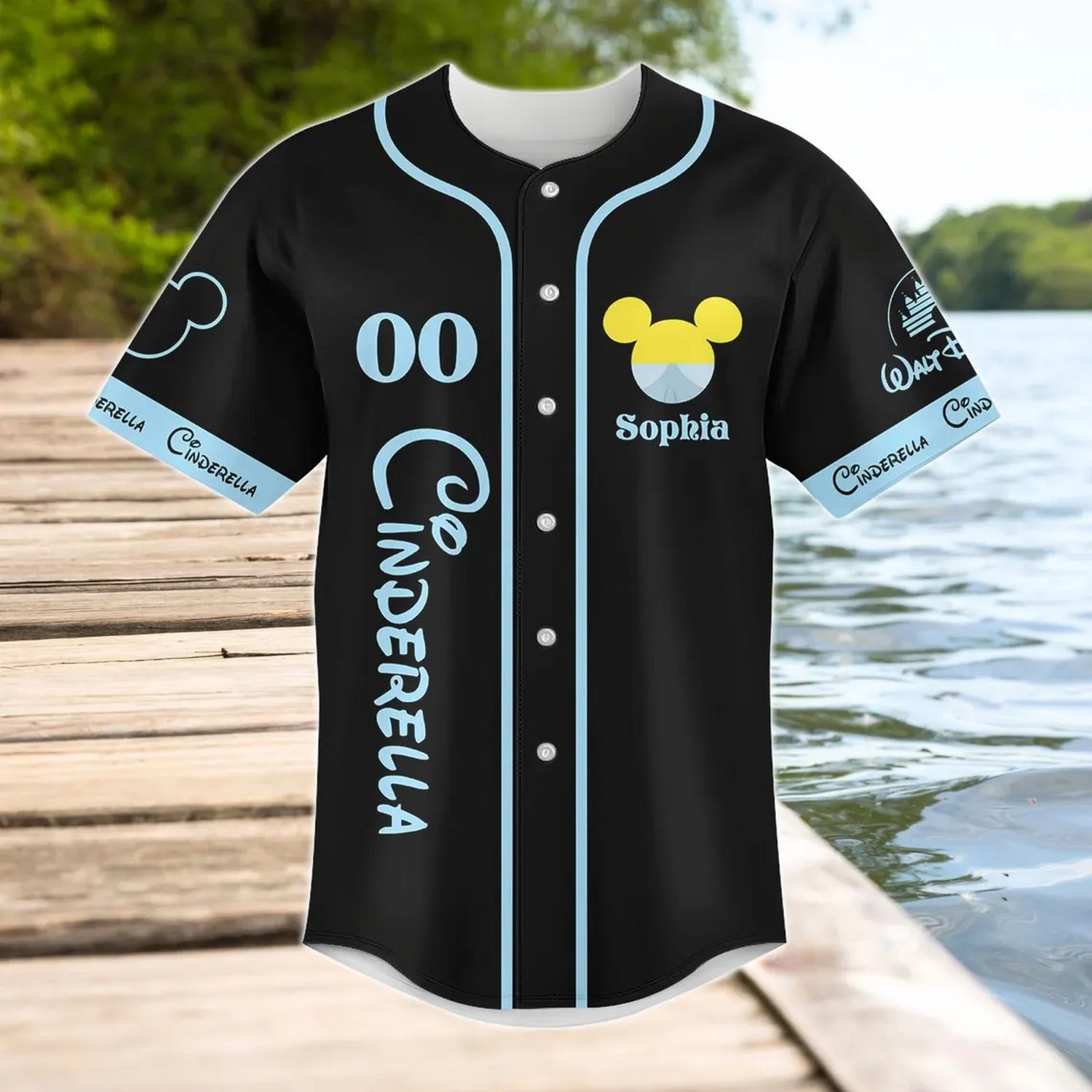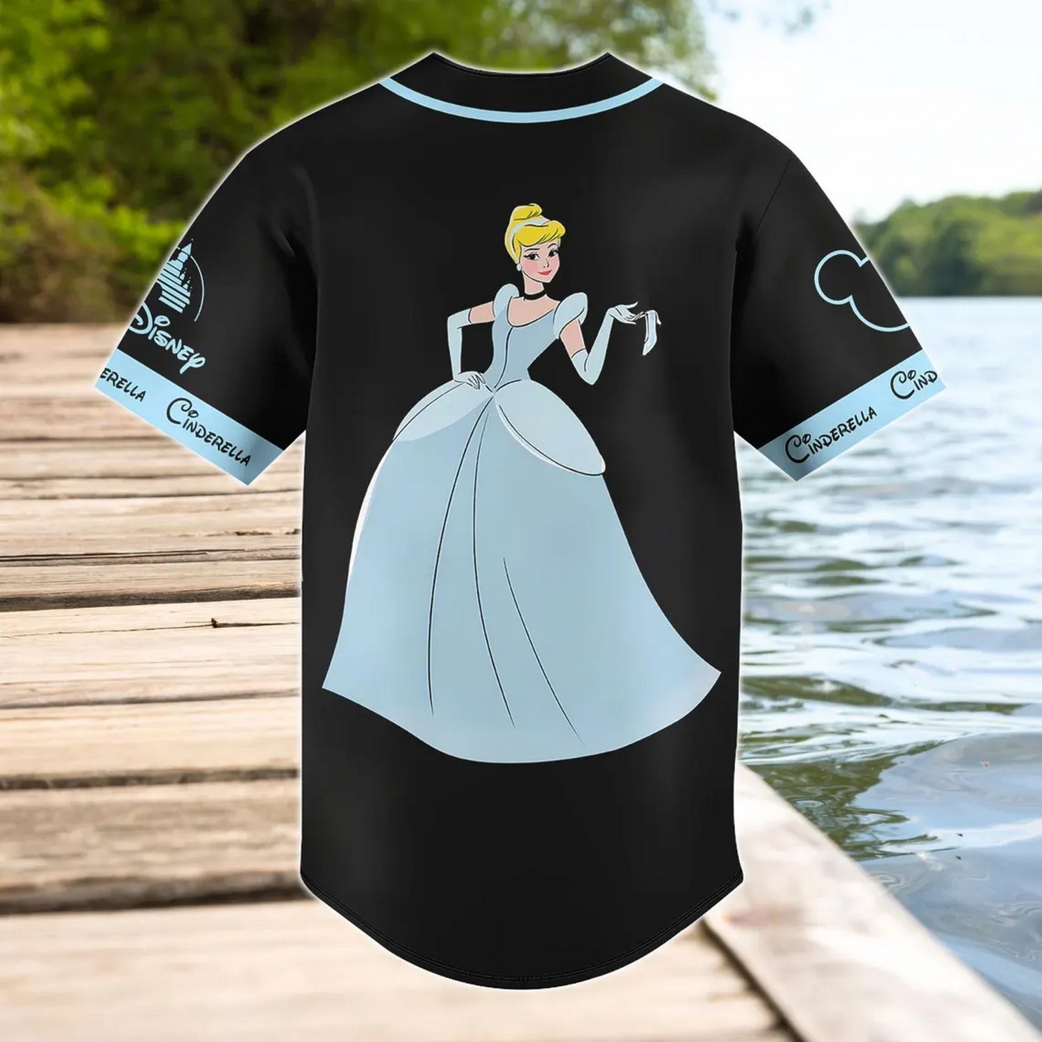 Custom Name And Number Disney Princess Cinderella Black Baseball Jersey
