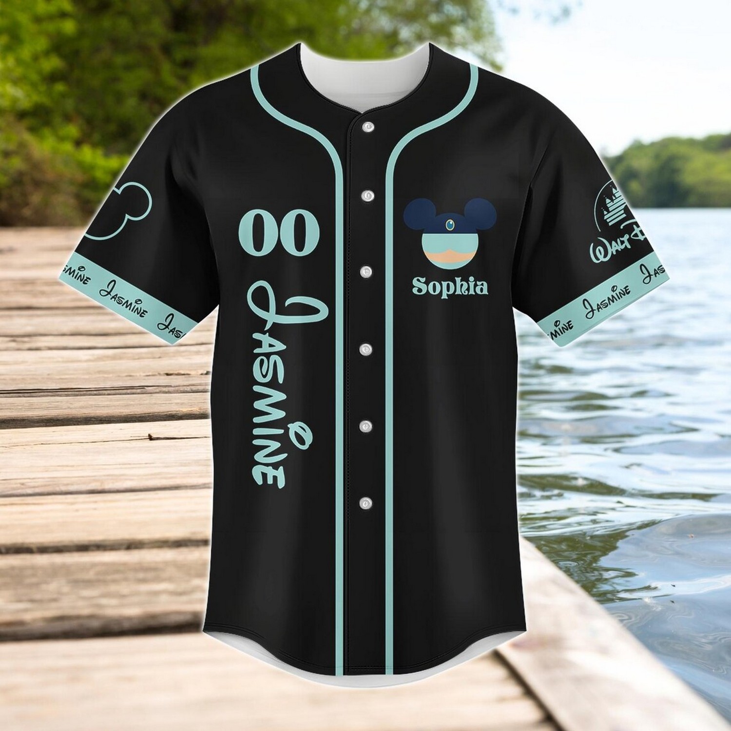 Custom Name And Number Disney Princess Jassmine Black Baseball Jersey