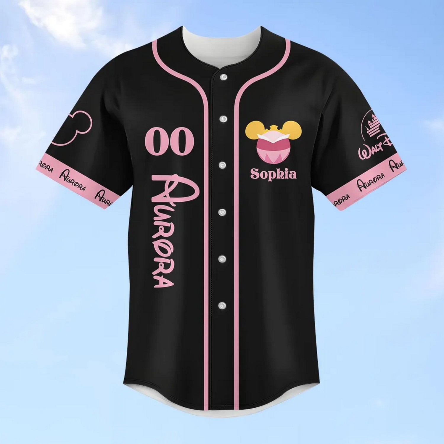 Custom Name And Number Disney Sleeping Beauty Aurora Princess Simple Black Baseball Jersey