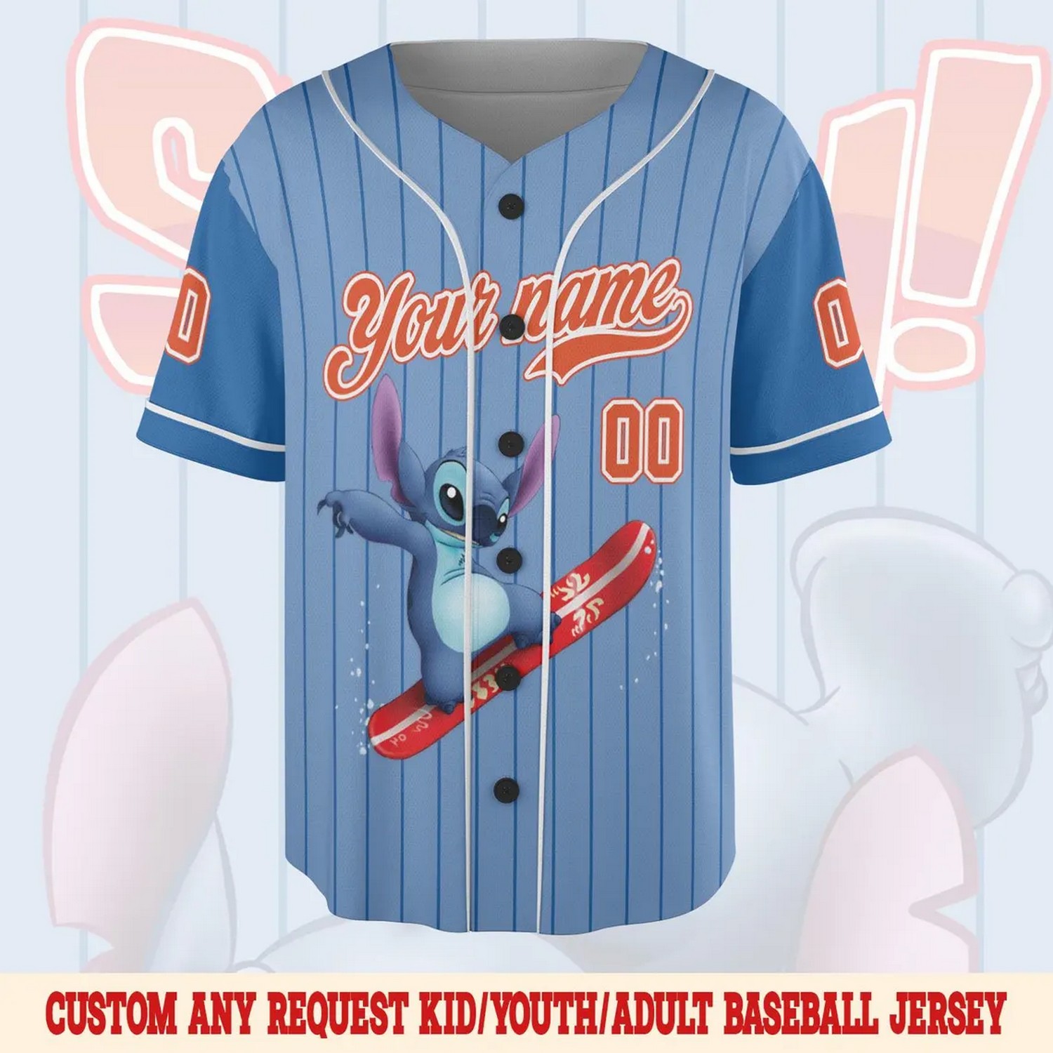Custom Name And Number Disney Stitch Surfing Striped Blue Baseball Jersey