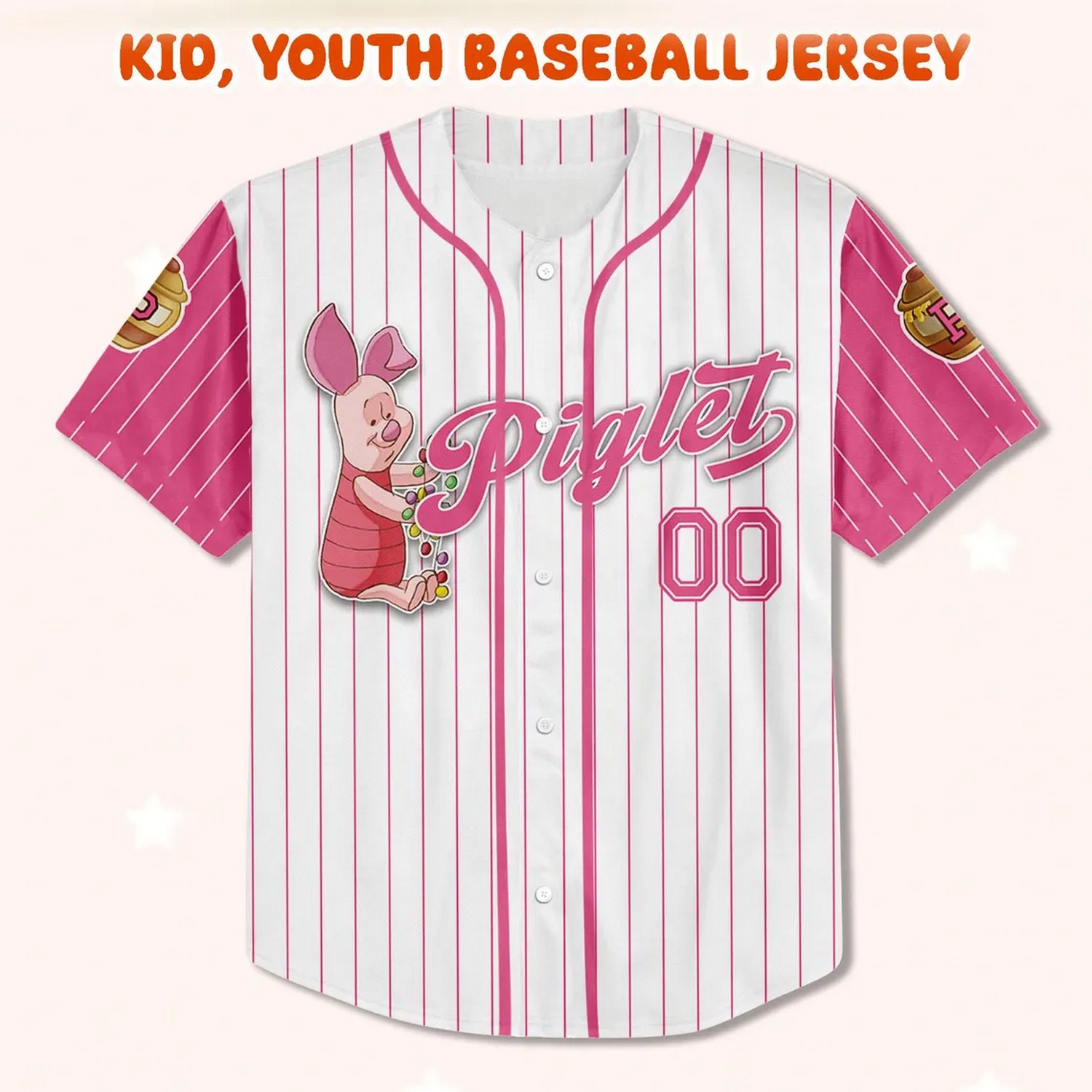 Custom Name And Number Disney Winnie The Pooh Piglet Cute Pink White Baseball Jersey