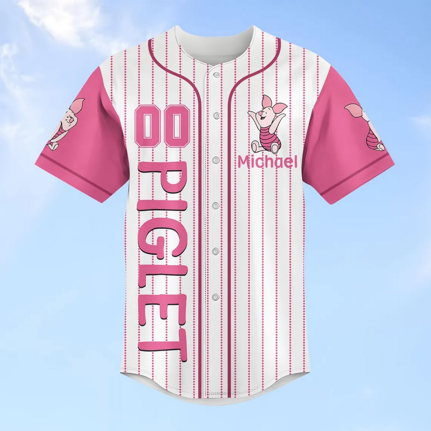 Custom Name And Number Disney Winnie The Pooh Piglet Cute Striped Line Baseball Jersey