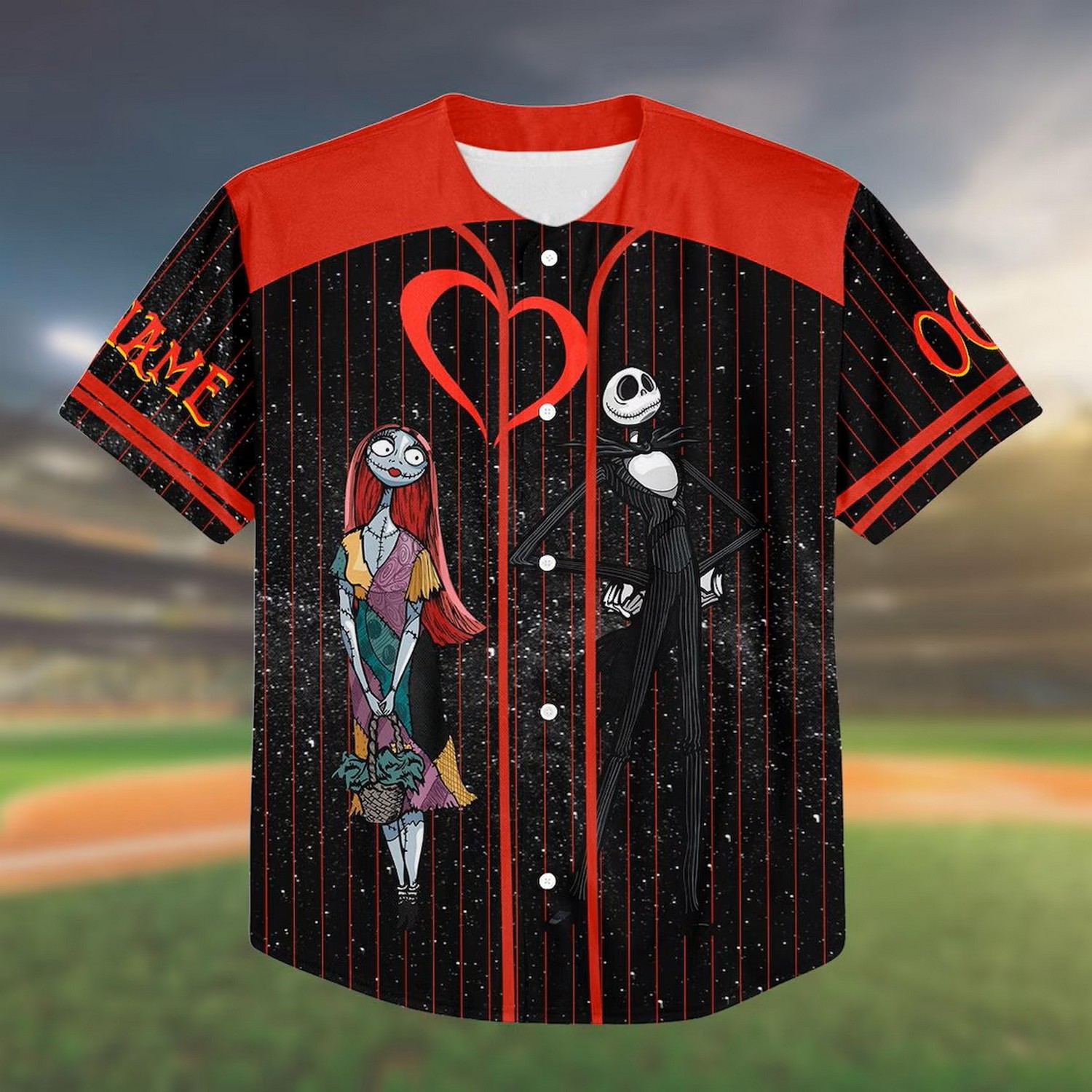 Custom Name And Number Halloween The Night Before Christmas Jack Sally Couple Baseball Jersey
