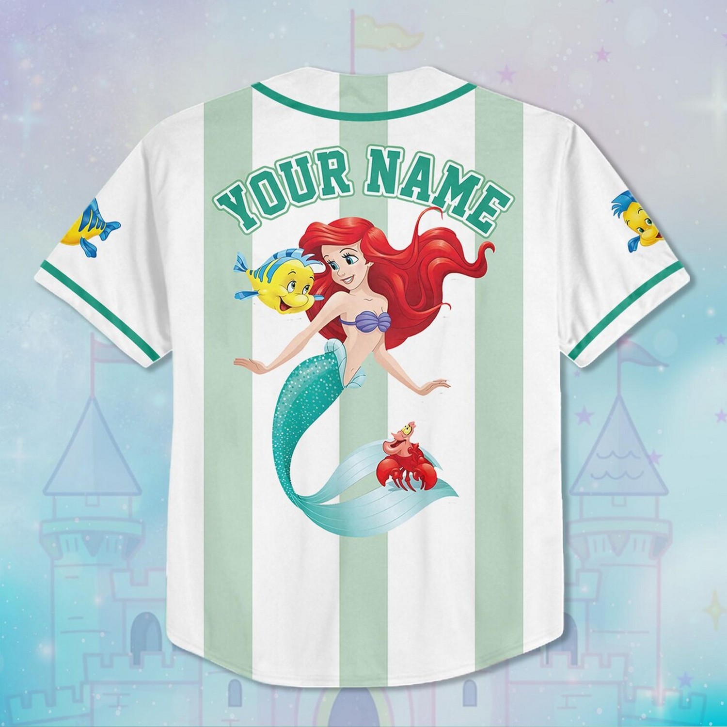 Custom Name And Number The Little Mermaid Princess Ariel Cartoon Green White Baseball Jersey