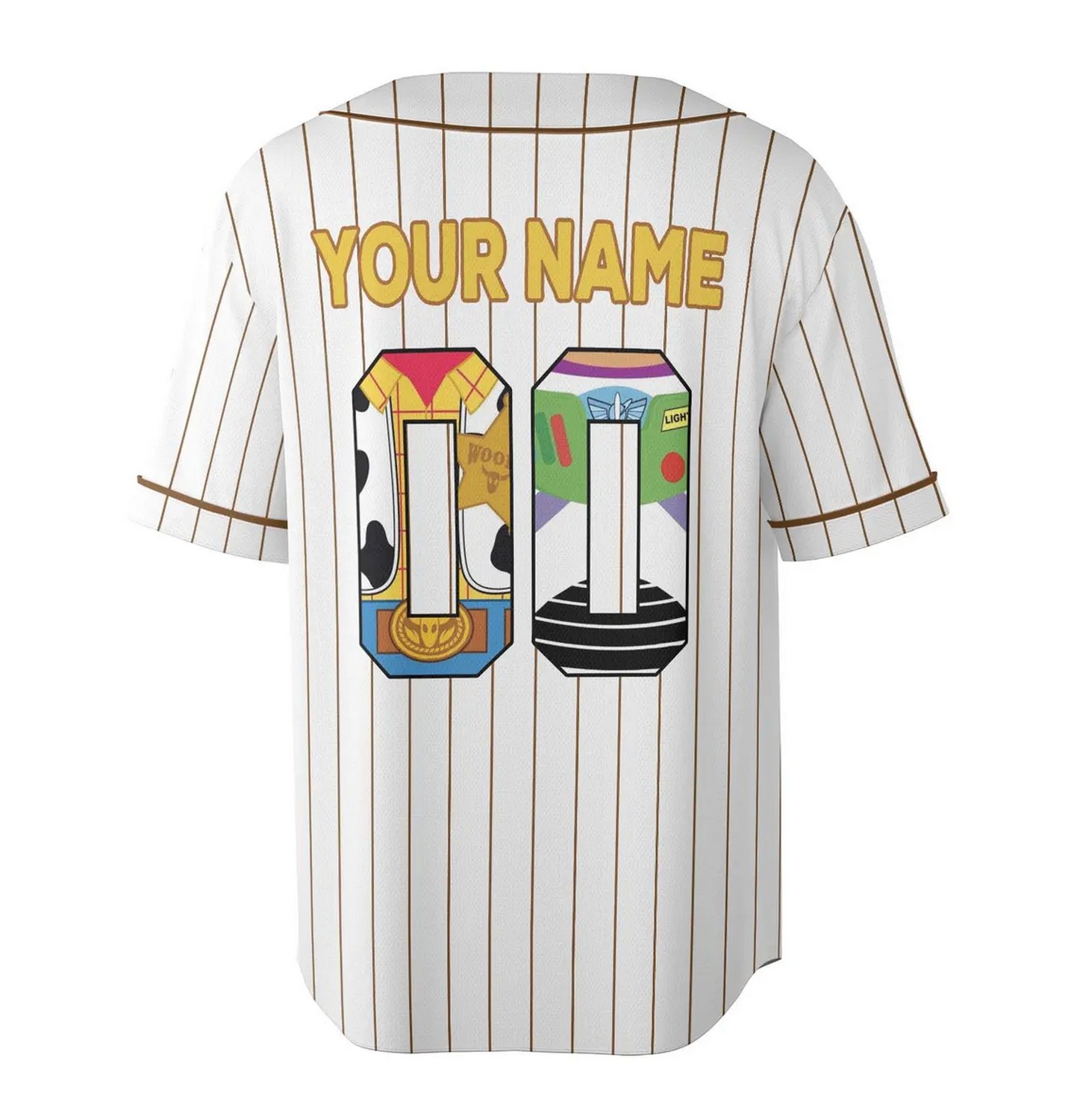 Custom Name And Number Toy Story Birthday Boy Striped White Baseball Jersey
