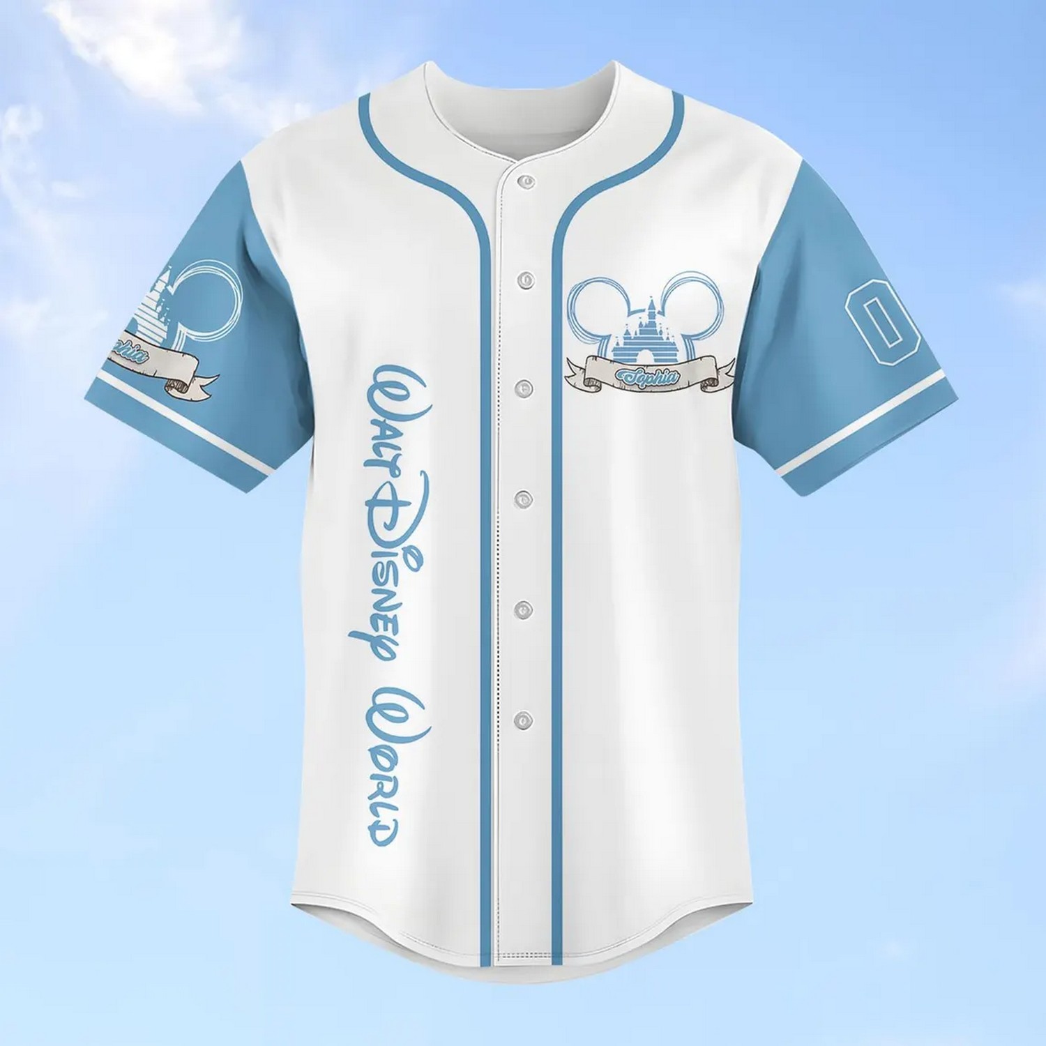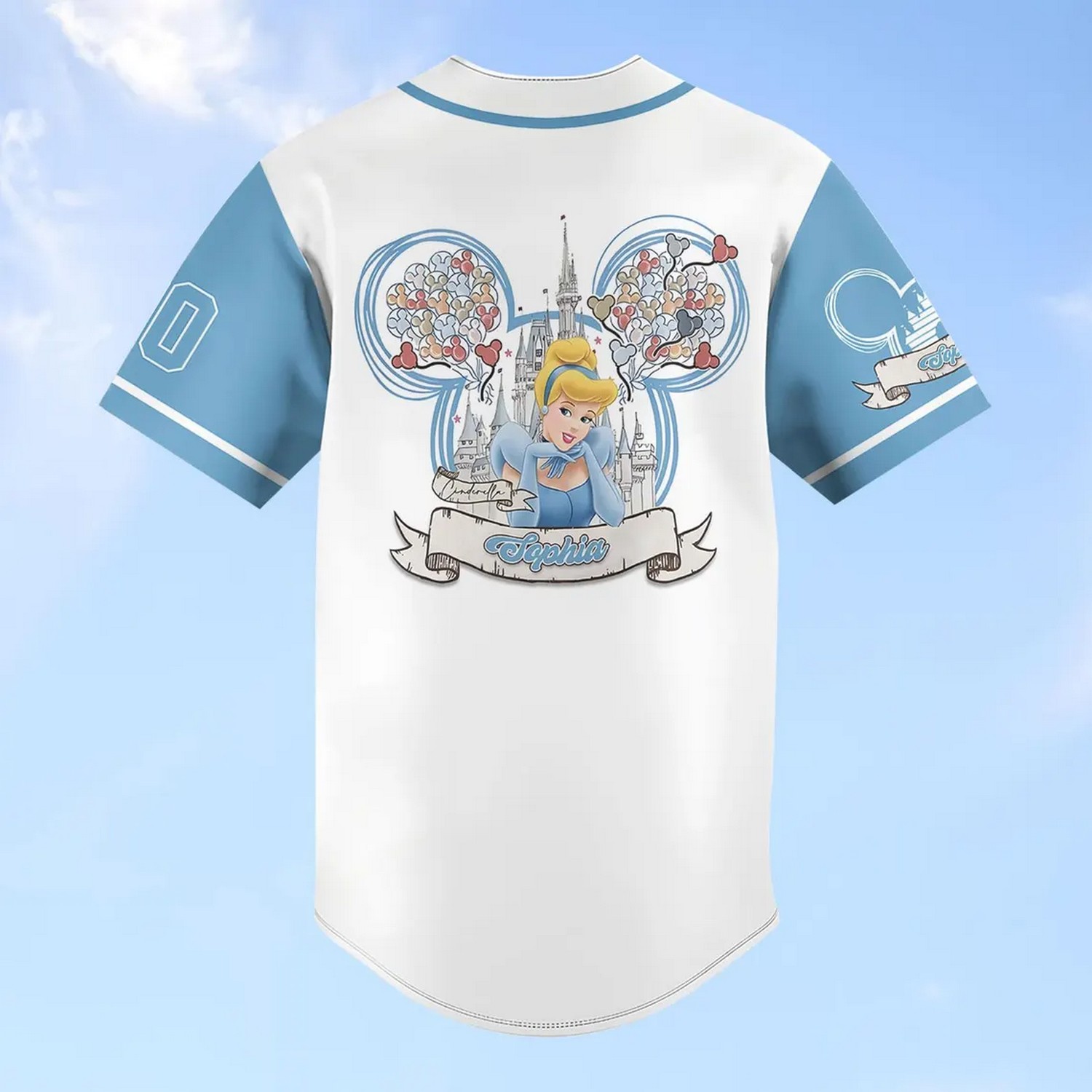 Custom Name And Number Walt Disneyland Cinderella Princesssimple Blue White Baseball Jersey