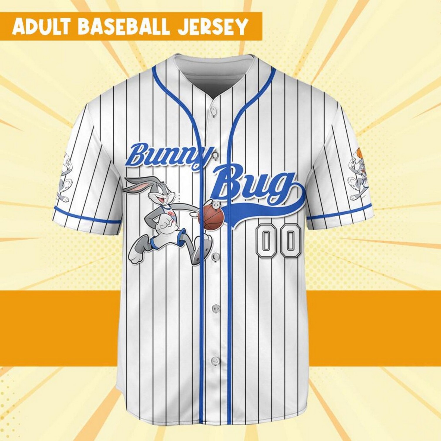 Custom Name Bunny Bug Baseball Jersey Blue White