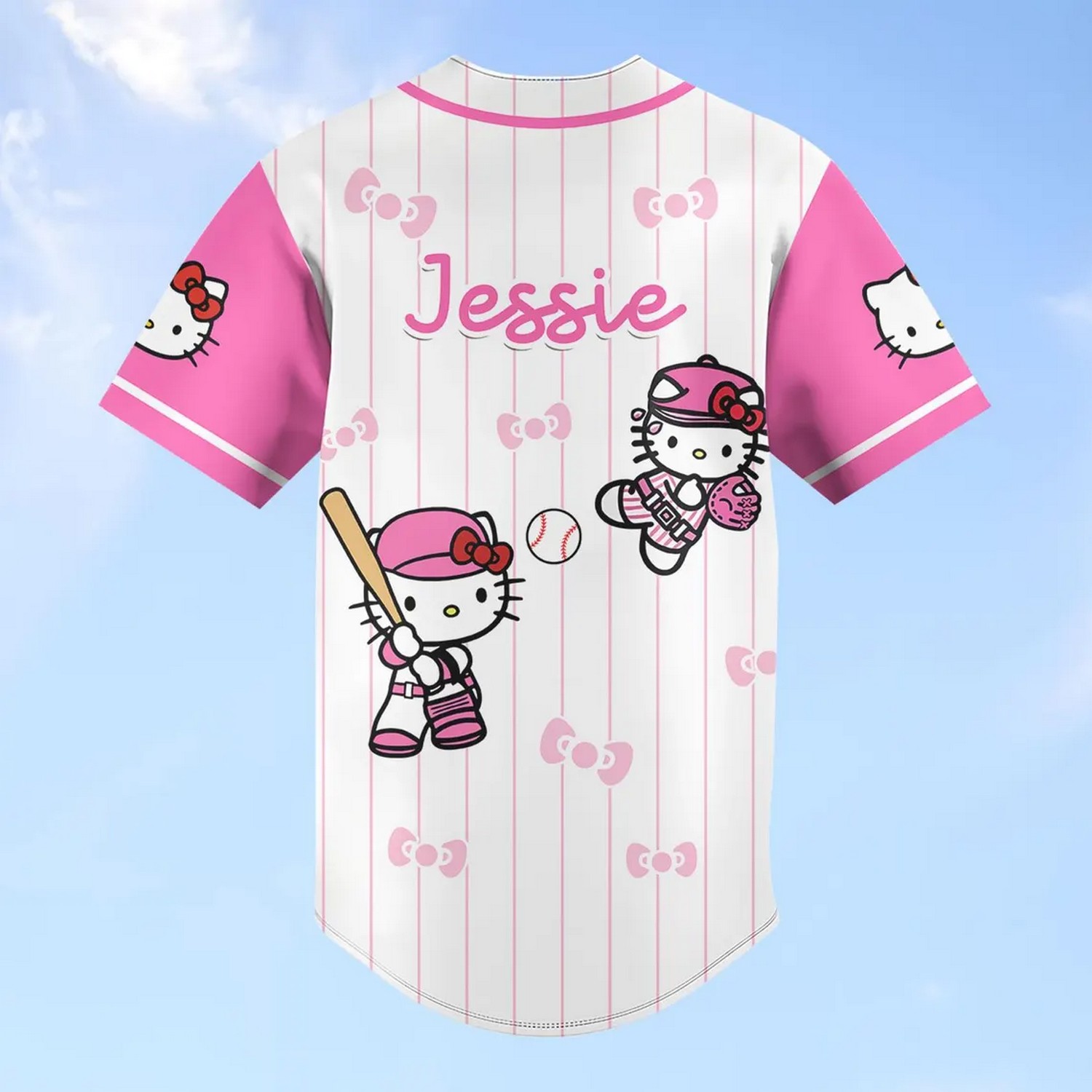 Custom Name Hello Kitty Little Bow Tie Baseball Jersey