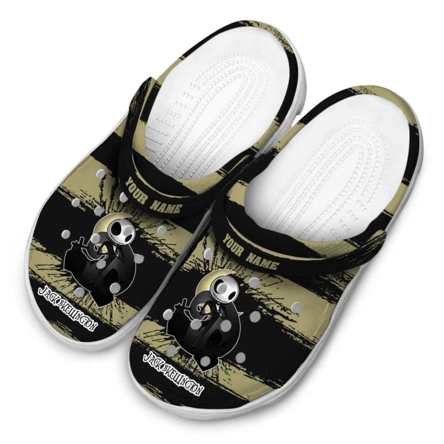 Custom Name Jack Skellington Paint Splatter Graphics Halloween Clogs For Kids And Adults Fast Shipping