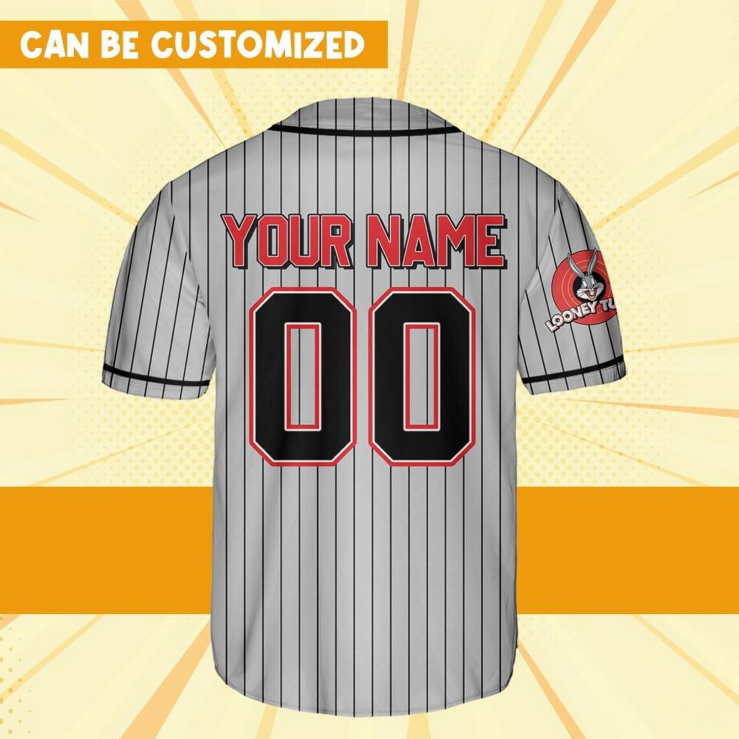 Custom Name Looney Tunes Bug Bunny Striped Gray Baseball Jersey