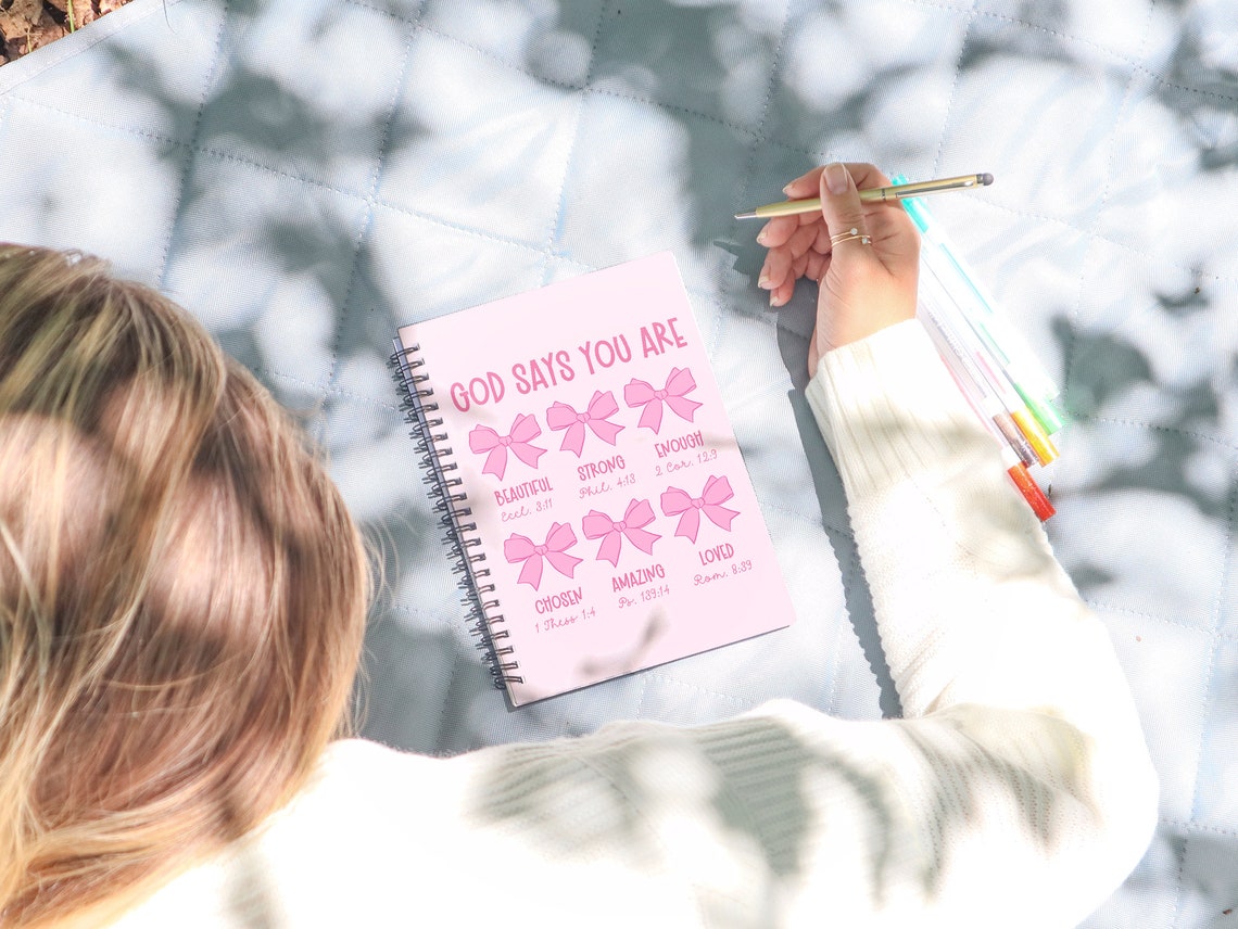 Cute Devotional Spiral Notebook For Christian Women, Girls Bible Study Prayer Hardcover Journal, Notebook For Sermon Notes, Religious Gift