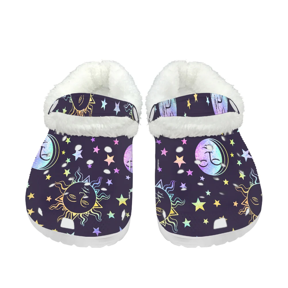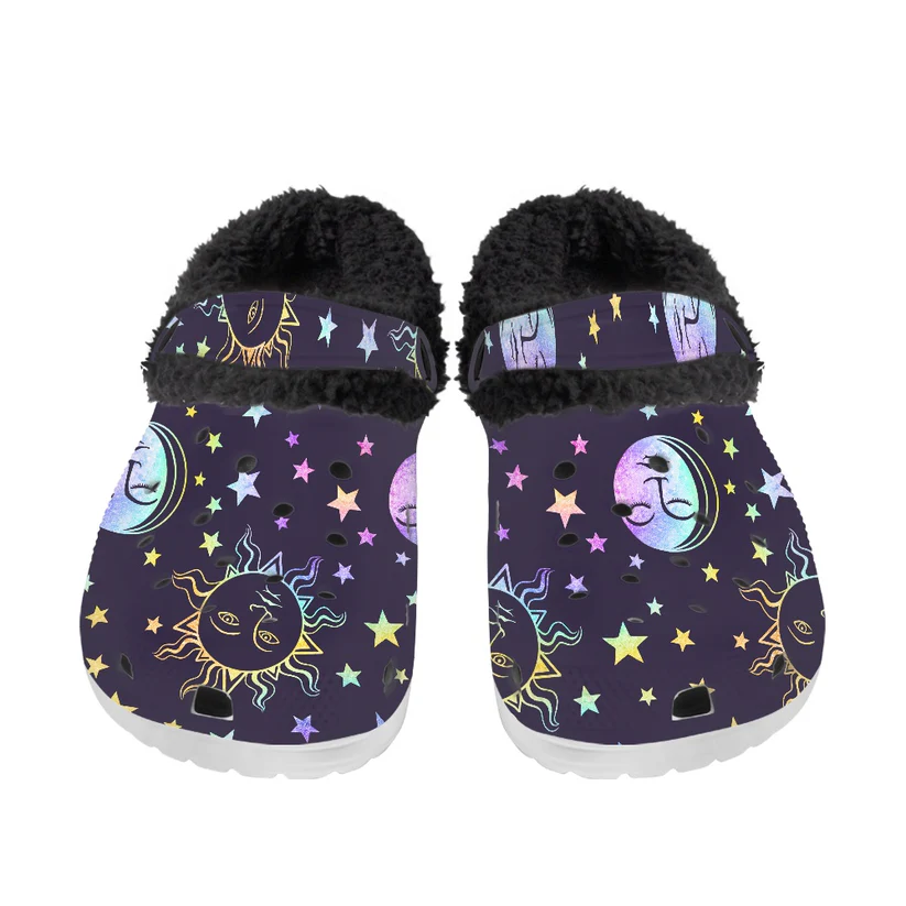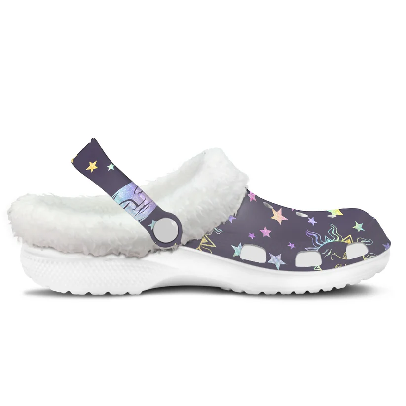 Cute Girly Stars Sun And Moon Pretty Magic Purple Fleece Lined Crocs