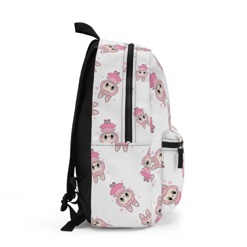 Cute Labubu Ballet White Backpack, All Over-Printed Labubu School Bag