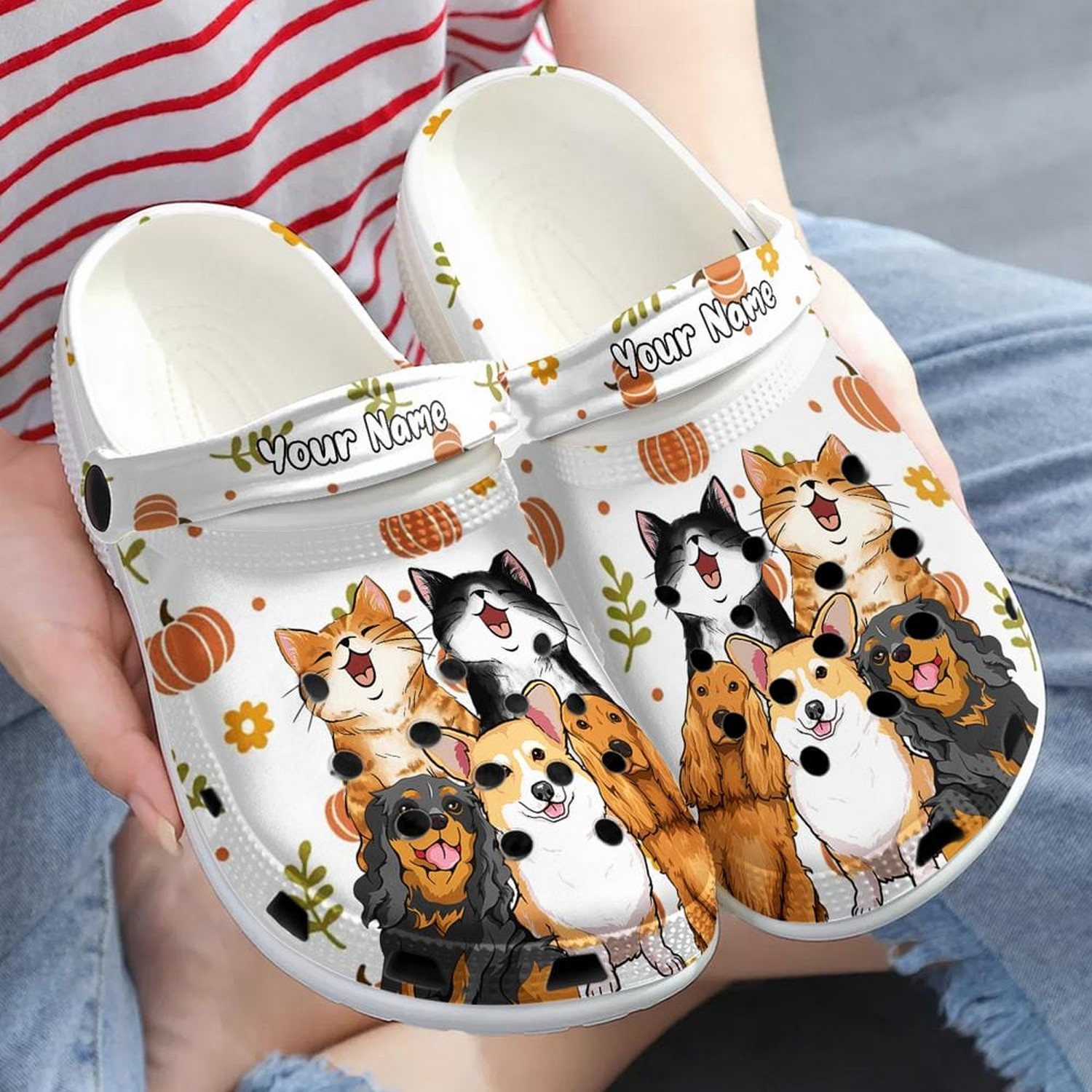 Cute Pets Happy Halloween White And Yellow Clogs For Kids And Adults