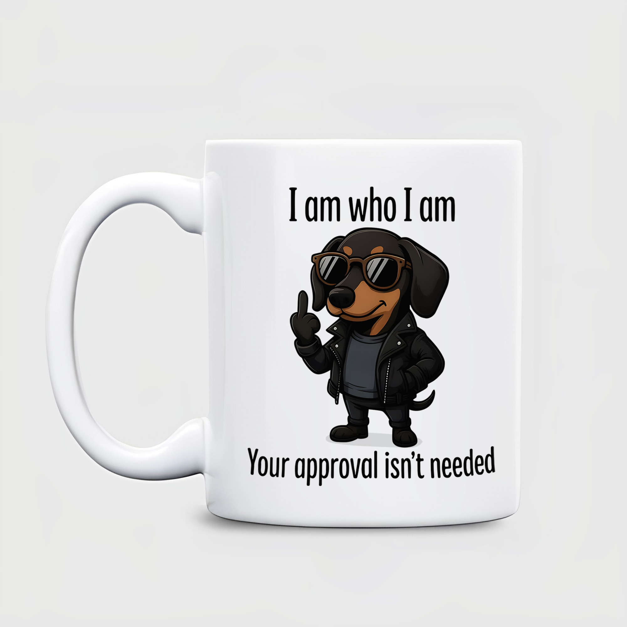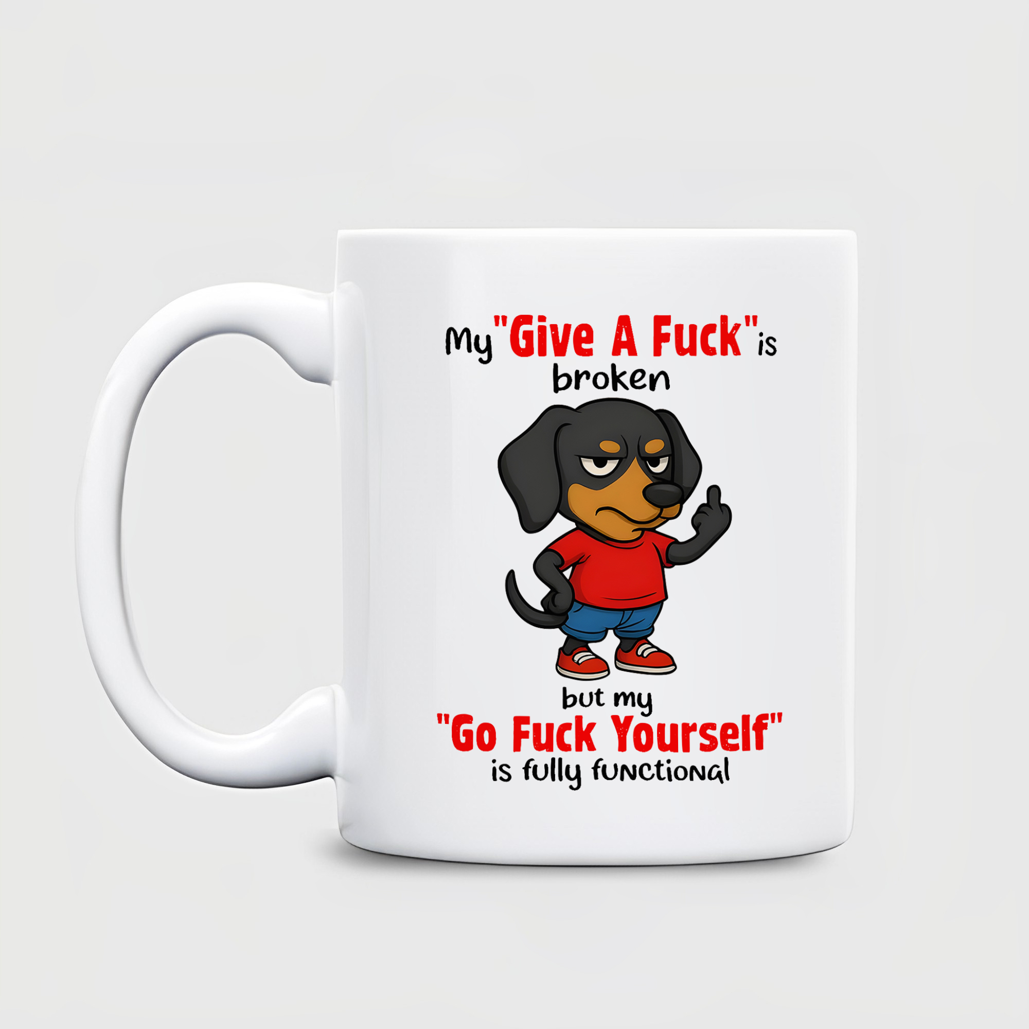 This Morning Brought To You By ” Here We Fricking Go Again”- Dachshund Dog & Funny Quote Ceramic Mug