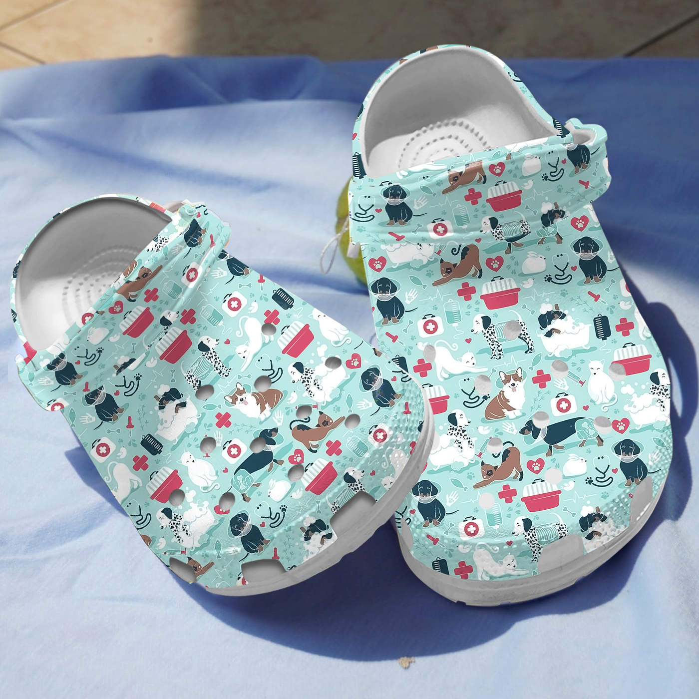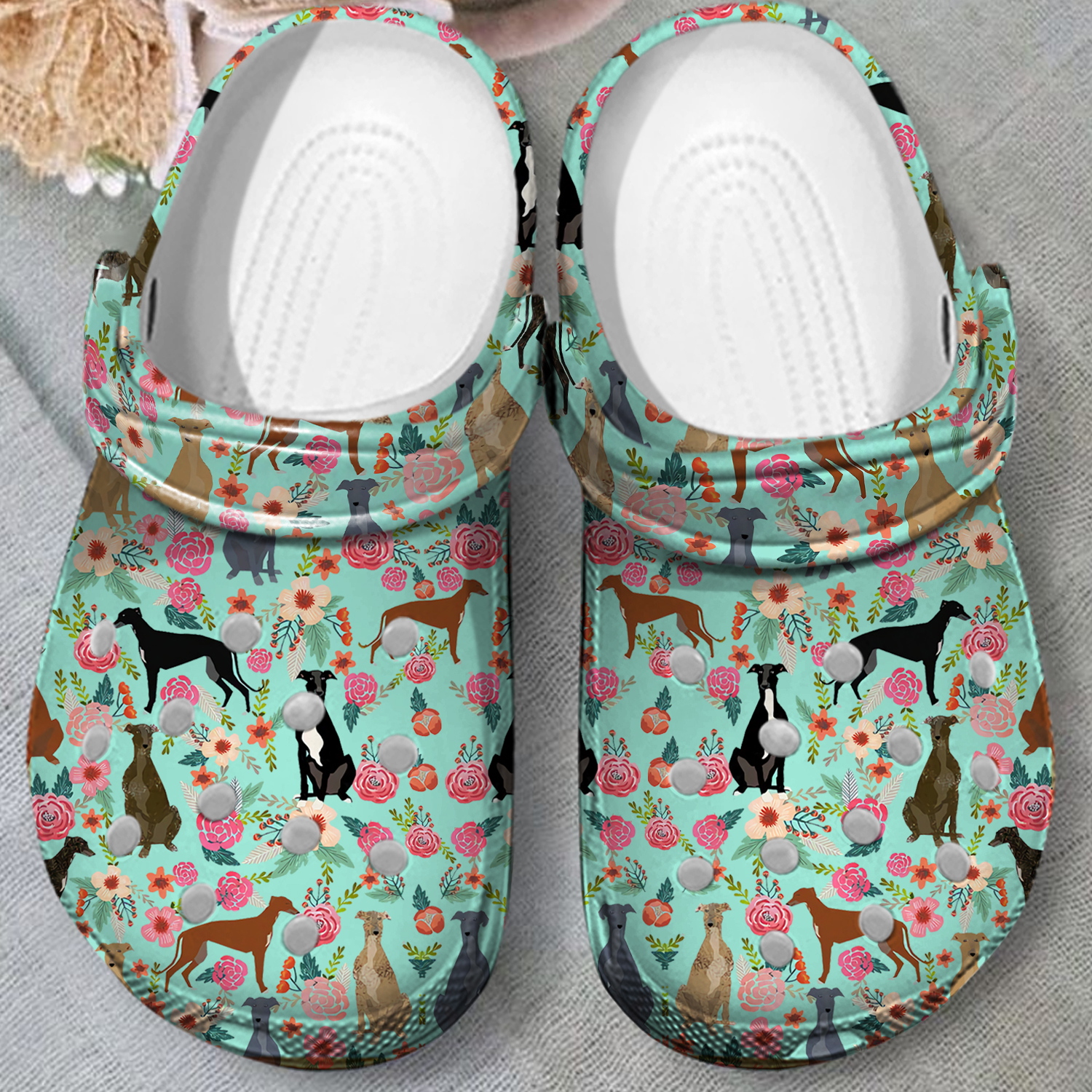Dogs with Flower Pattern - Mint Color Clogs