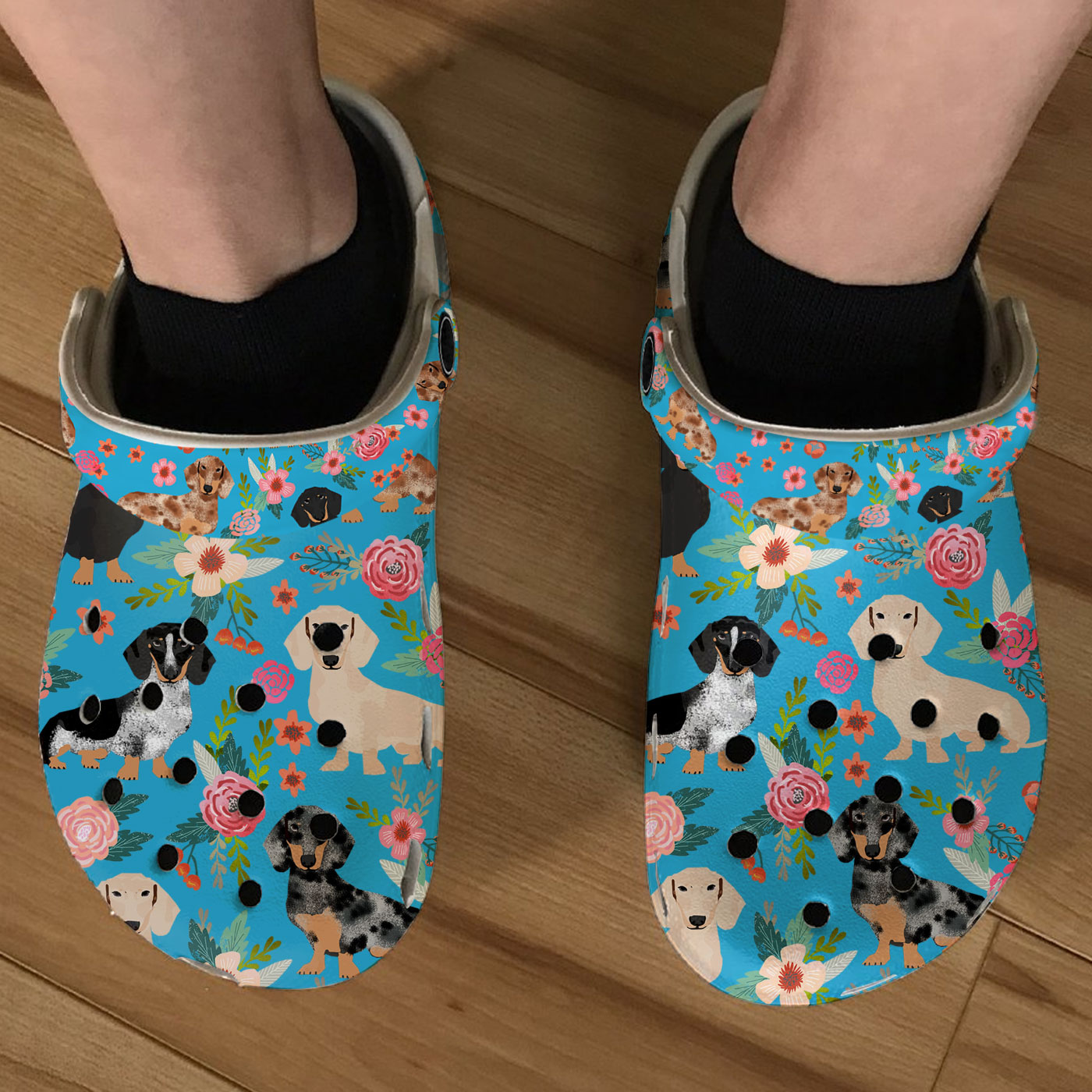 Dachshund with Floral Pattern Clogs