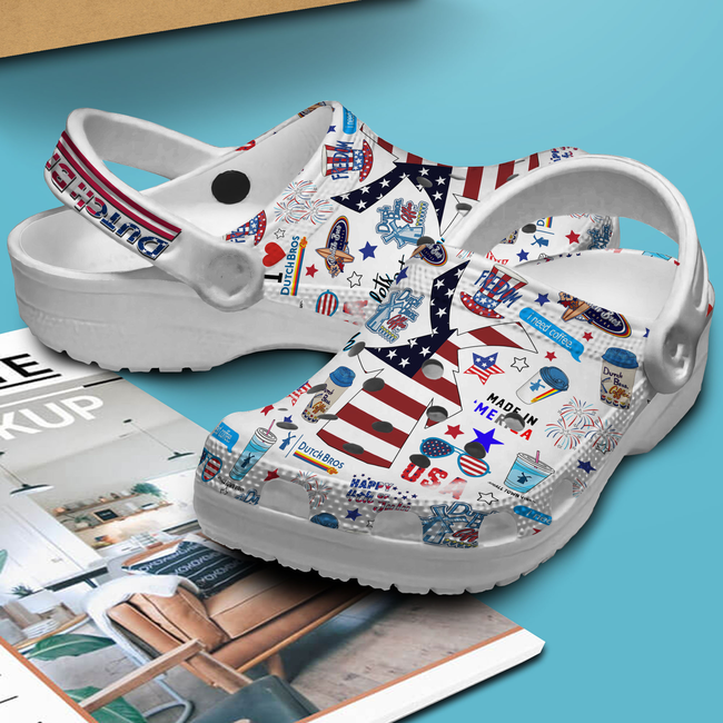 Durable White Footwear Dutch Bros 4th Of July Clogs Fast Shipping Worldwide