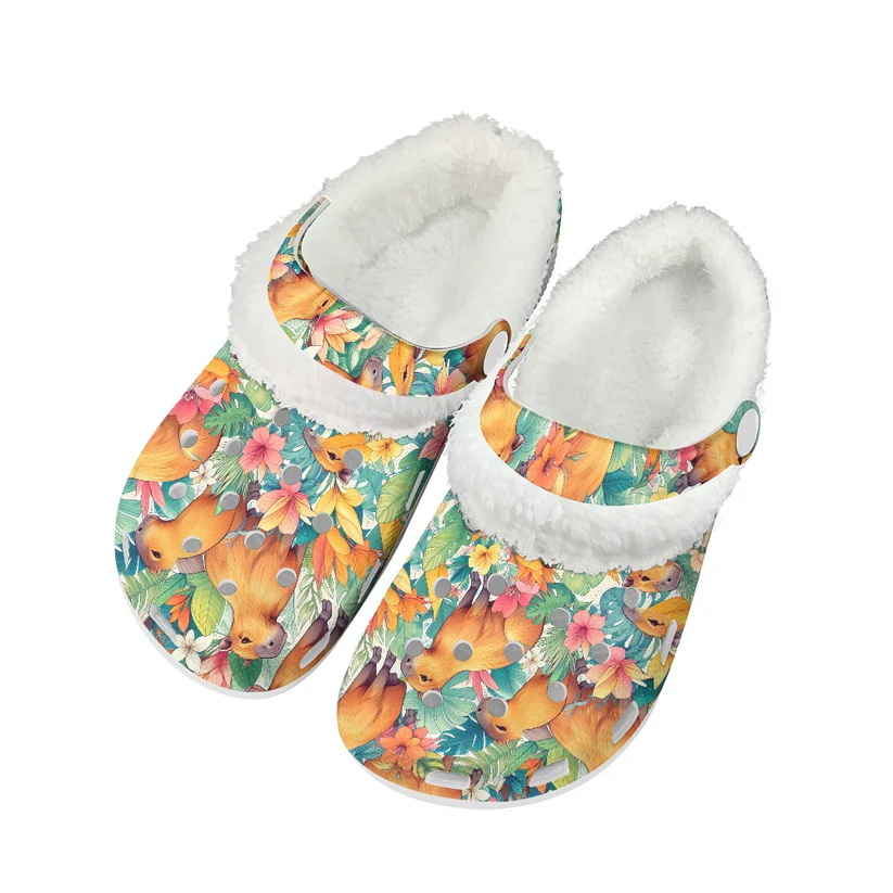 Eye-catching & Comfortable Capybara Floral Fleece Crocs