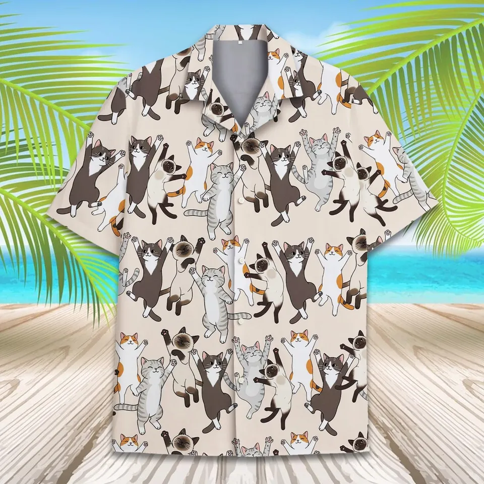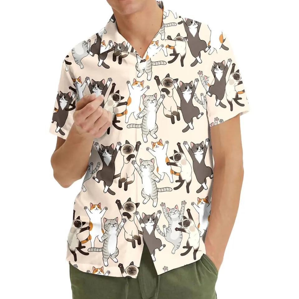 Funny Dancing Kitty Print Aloha Shirt for Cat Lover, Cute Cat Hawaiian Shirt