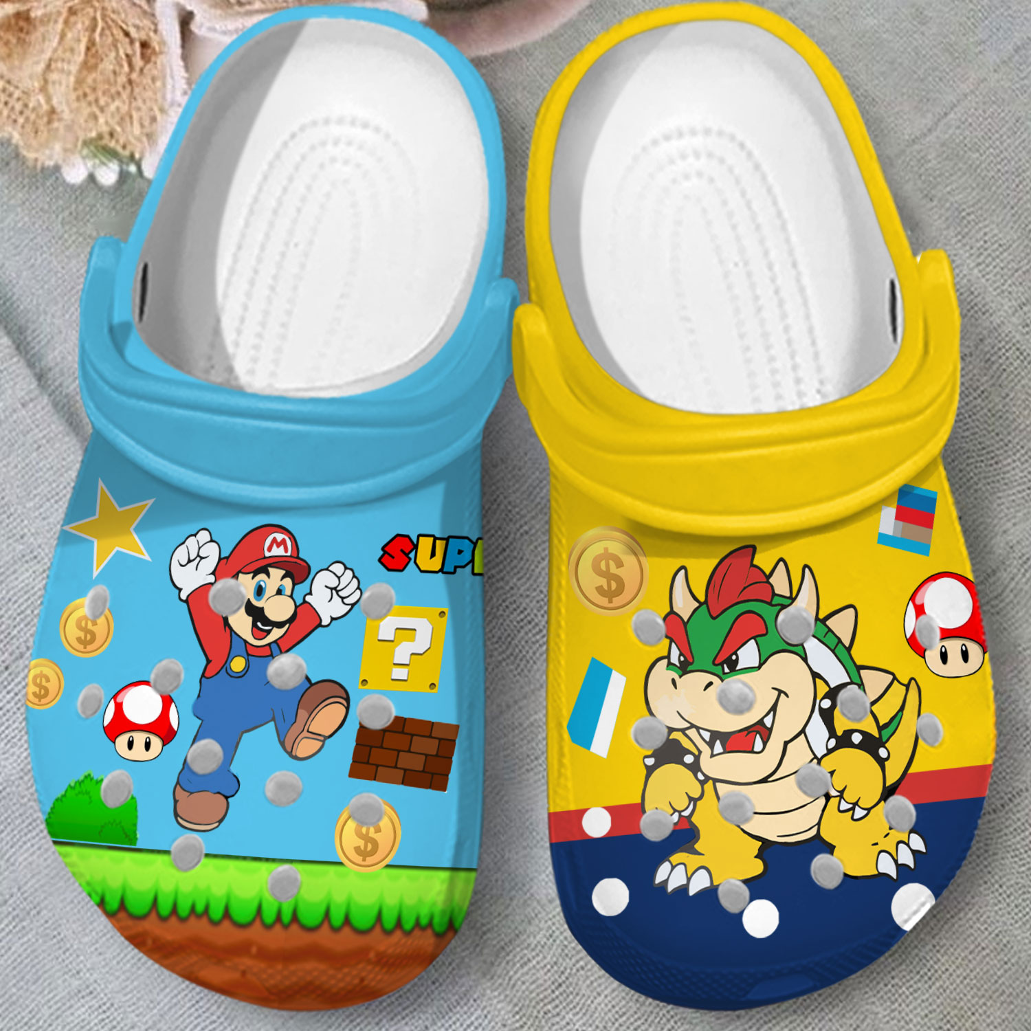 Funny Super Mario And Bowser Colorful Clogs Shoes