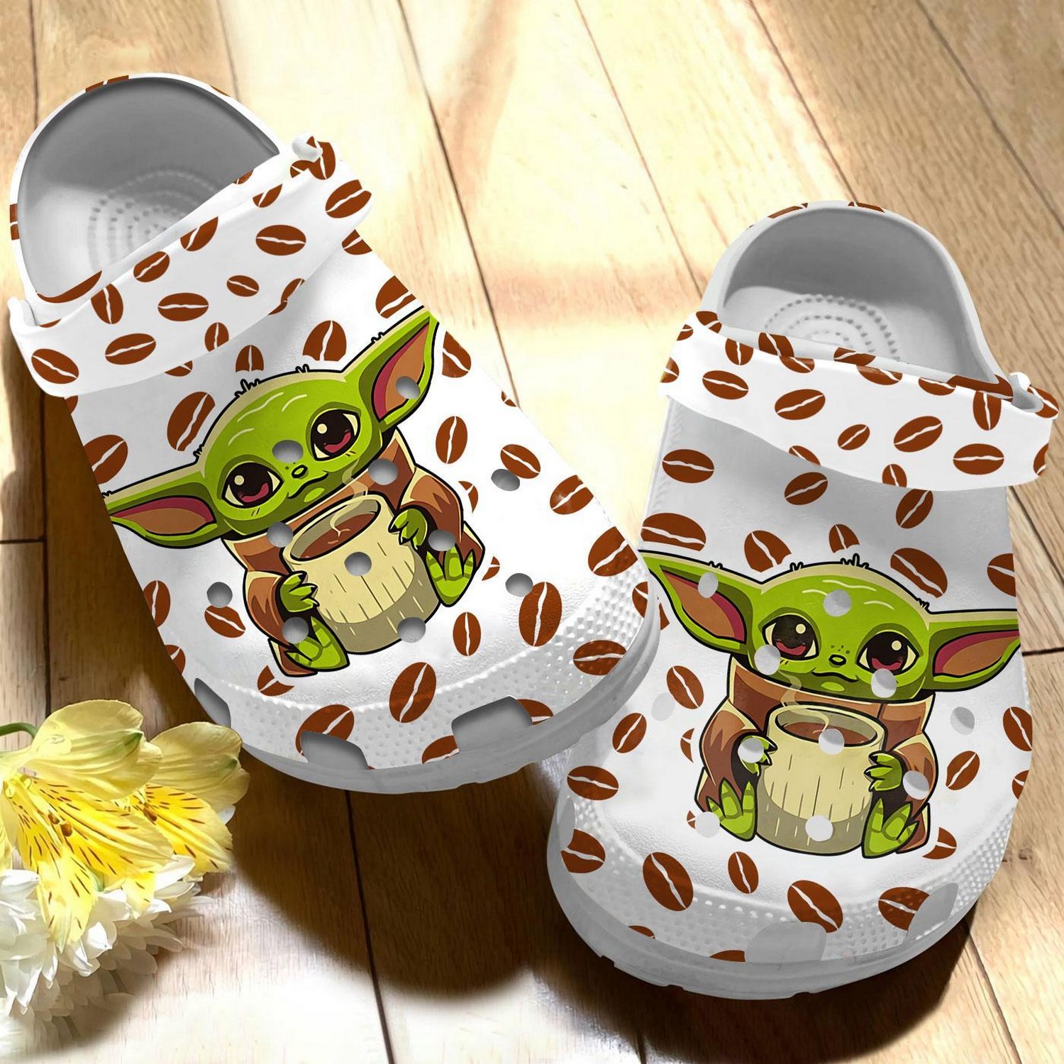 Happy Baby Yoda Drink Coffee Clogs Fast Shipping Available