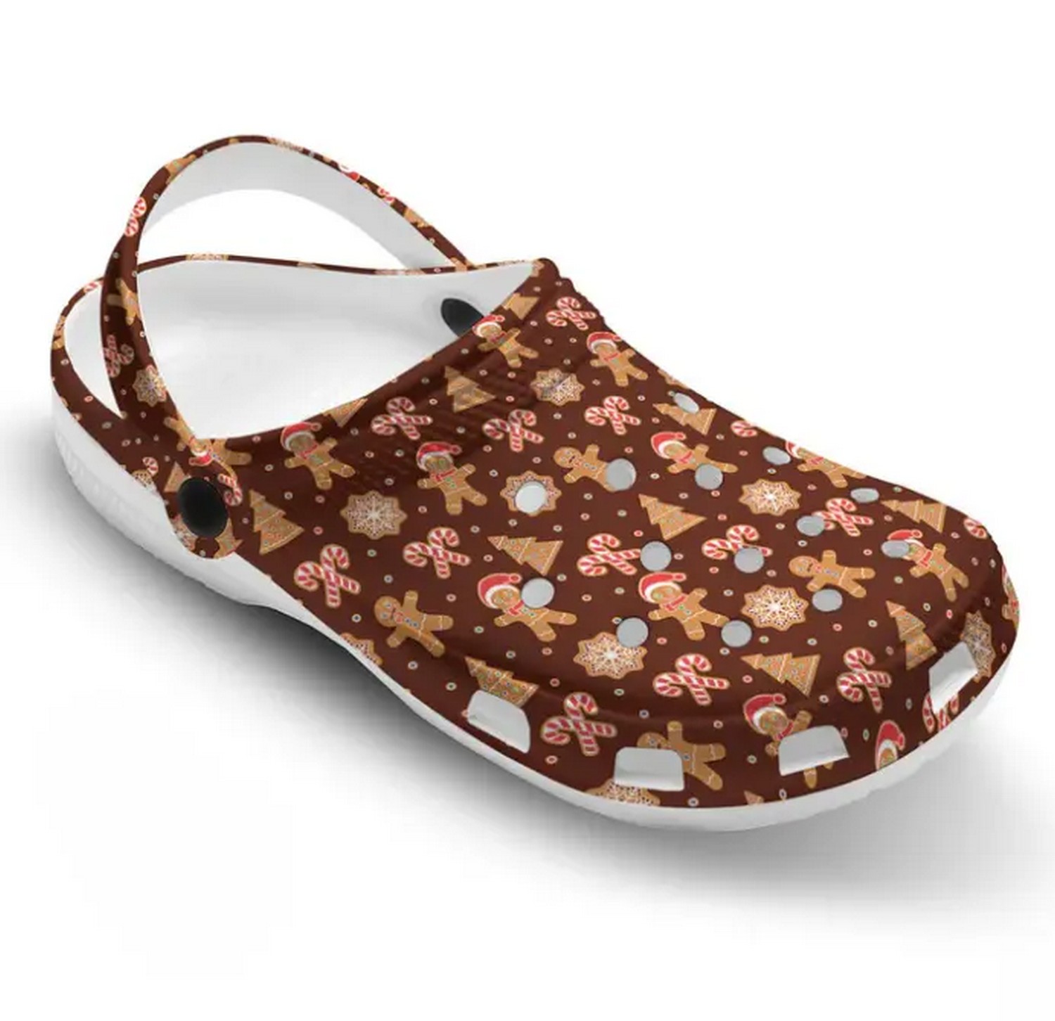 Little Gingerbread Wearing Christmas Hat And Candy Cane And Cookies Brown Clogs For Kids And Adults Fast Shipping