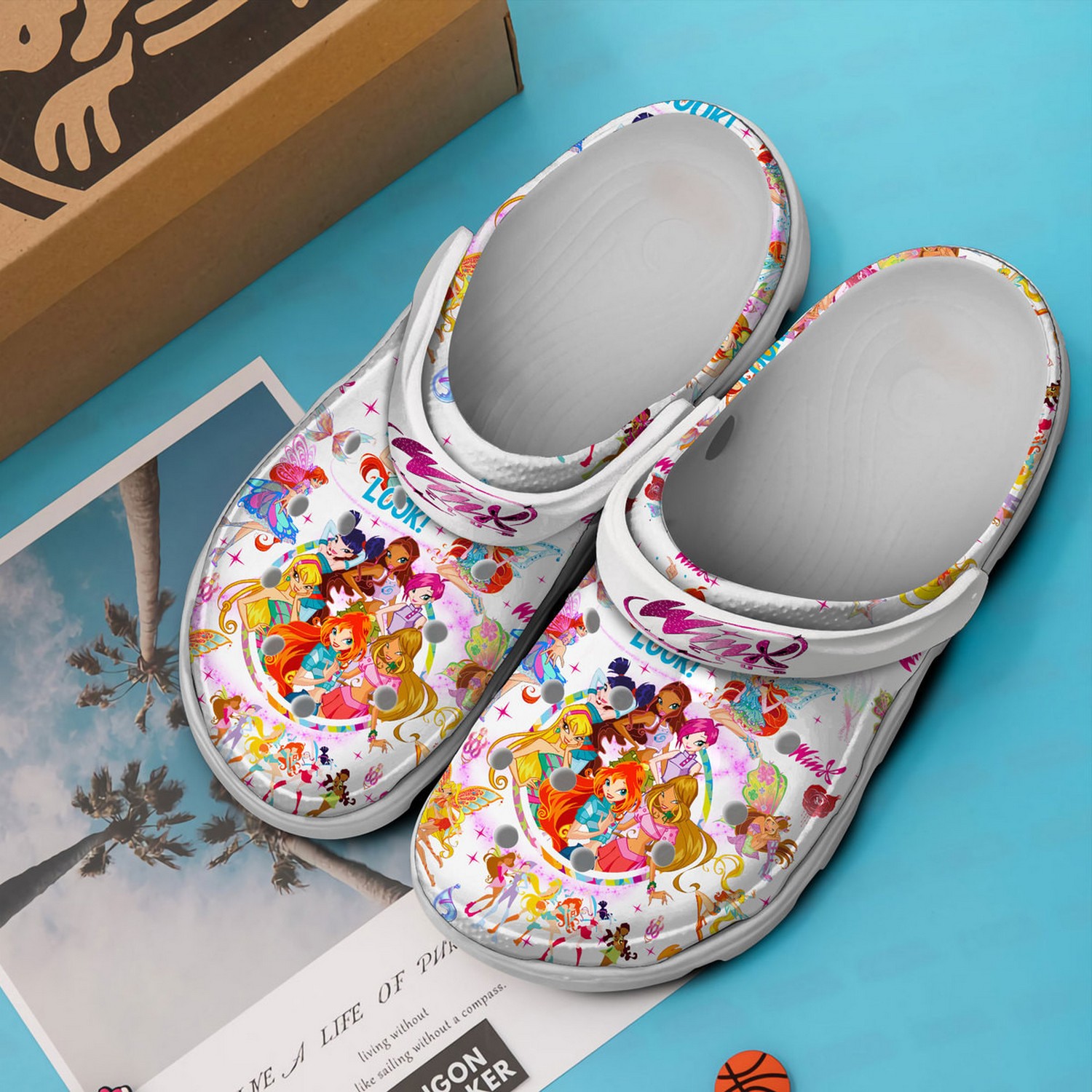 Look Beautiful White Winx Cartoon Clogs For Kids And Adults