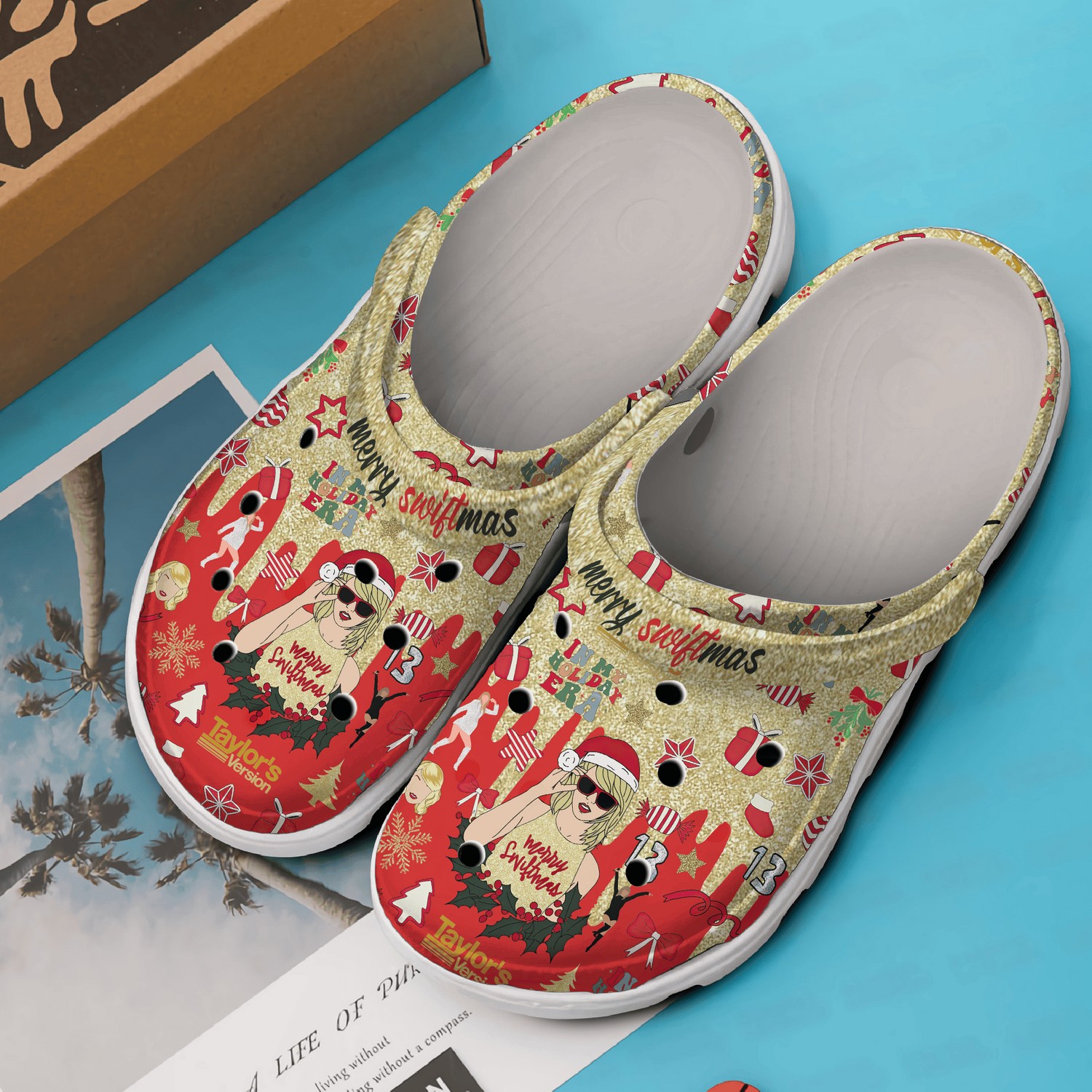 Merry Christmas Taylor Swift Swiftmas Red Gold Clogs For Kids And Adults Fast Shipping