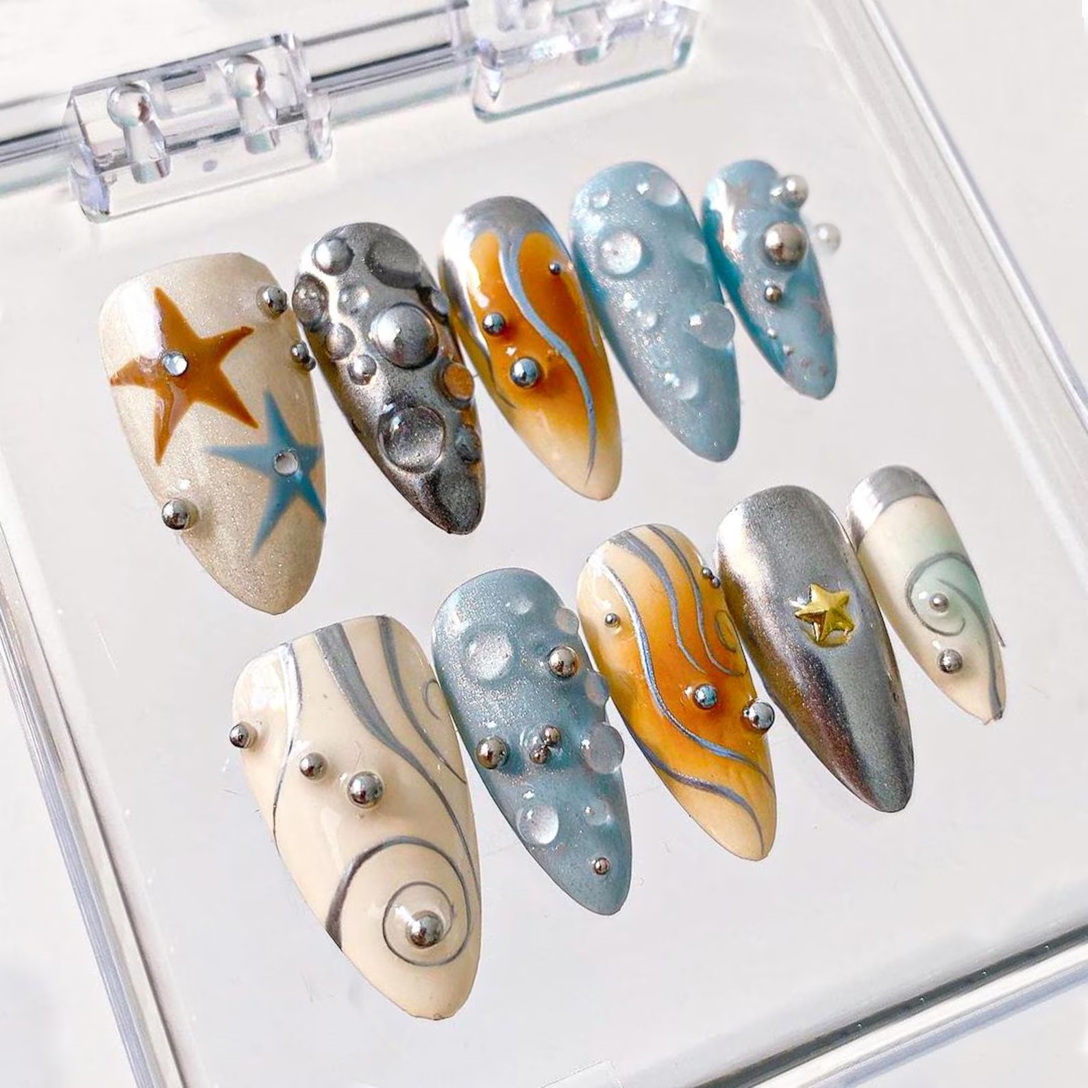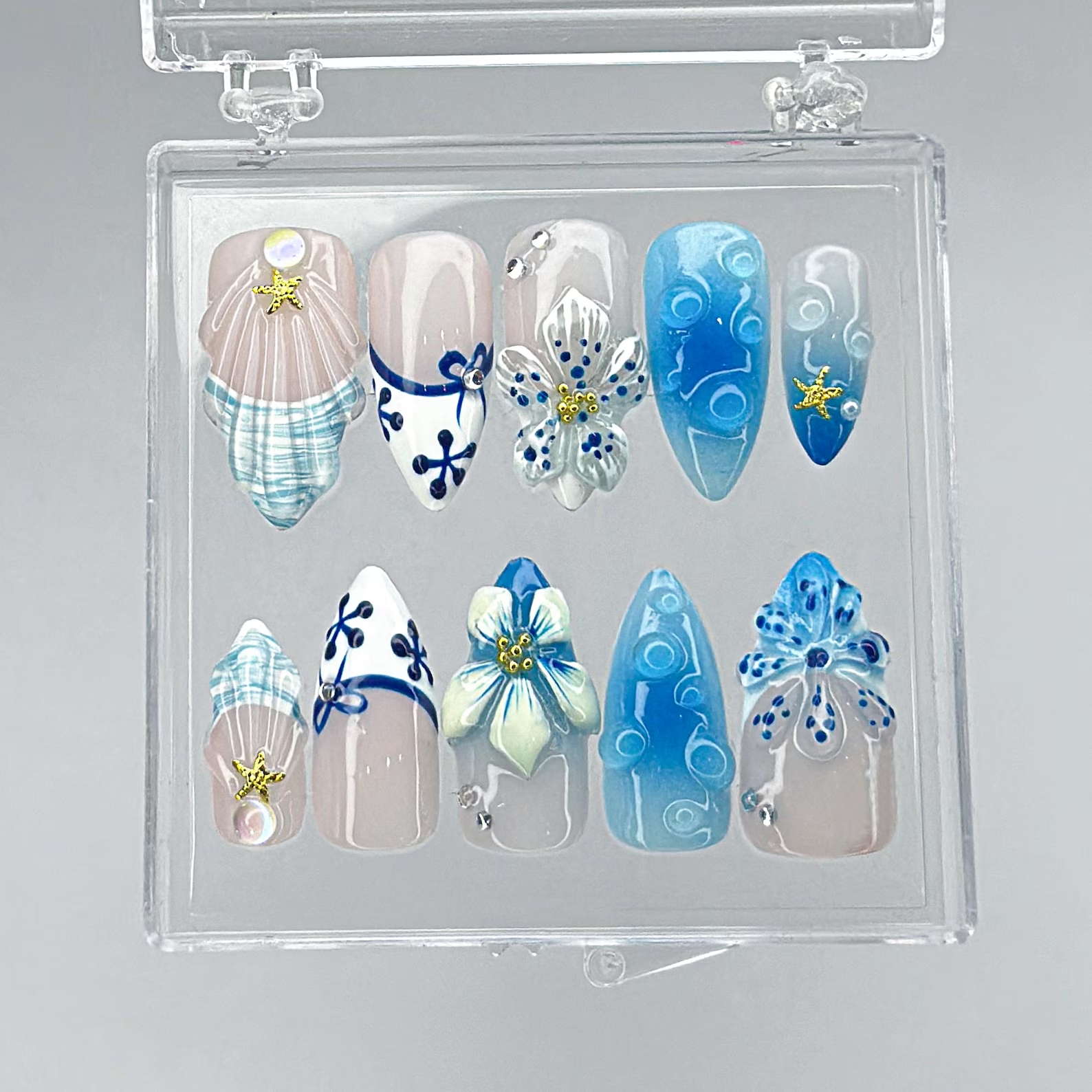 Colorful Tropical-themed Press On Nail, Hand Made Nail Set